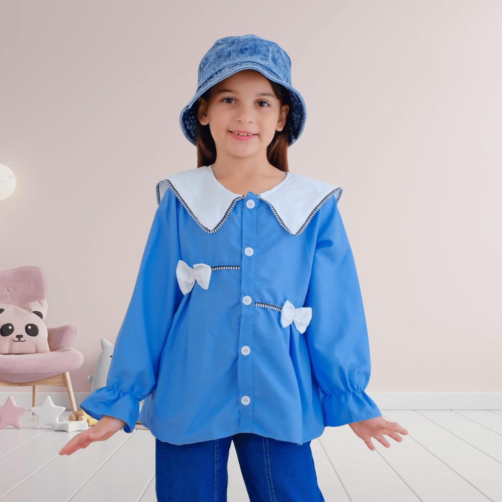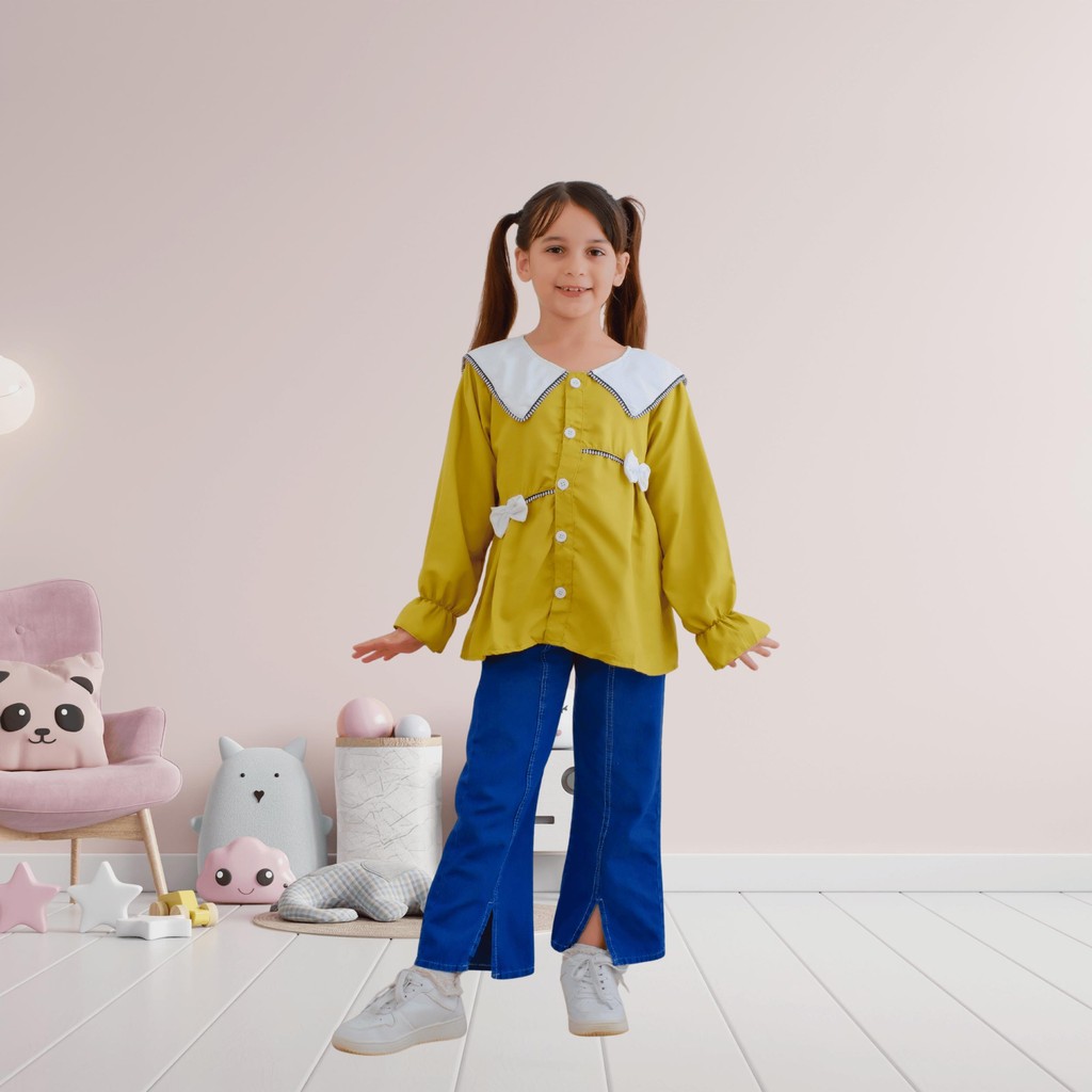 Setelan Anak Perempuan ORIGAMI | Baju Blouse Korea | Celana Jeans Cutbray | 3-12 Tahun Fashion