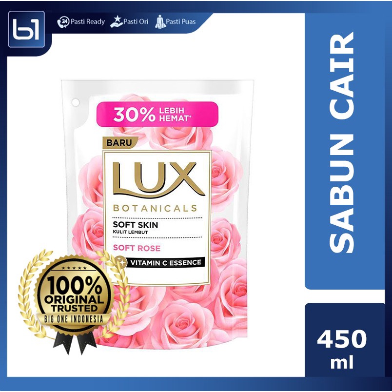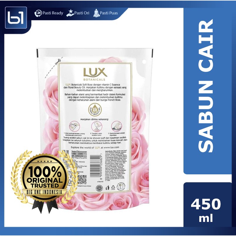 Sabun LUX Botanicals Soft Rose Refill 450 ML, Refil Sabun Mandi Cair 450ml, Reffil Body Wash Lux 450