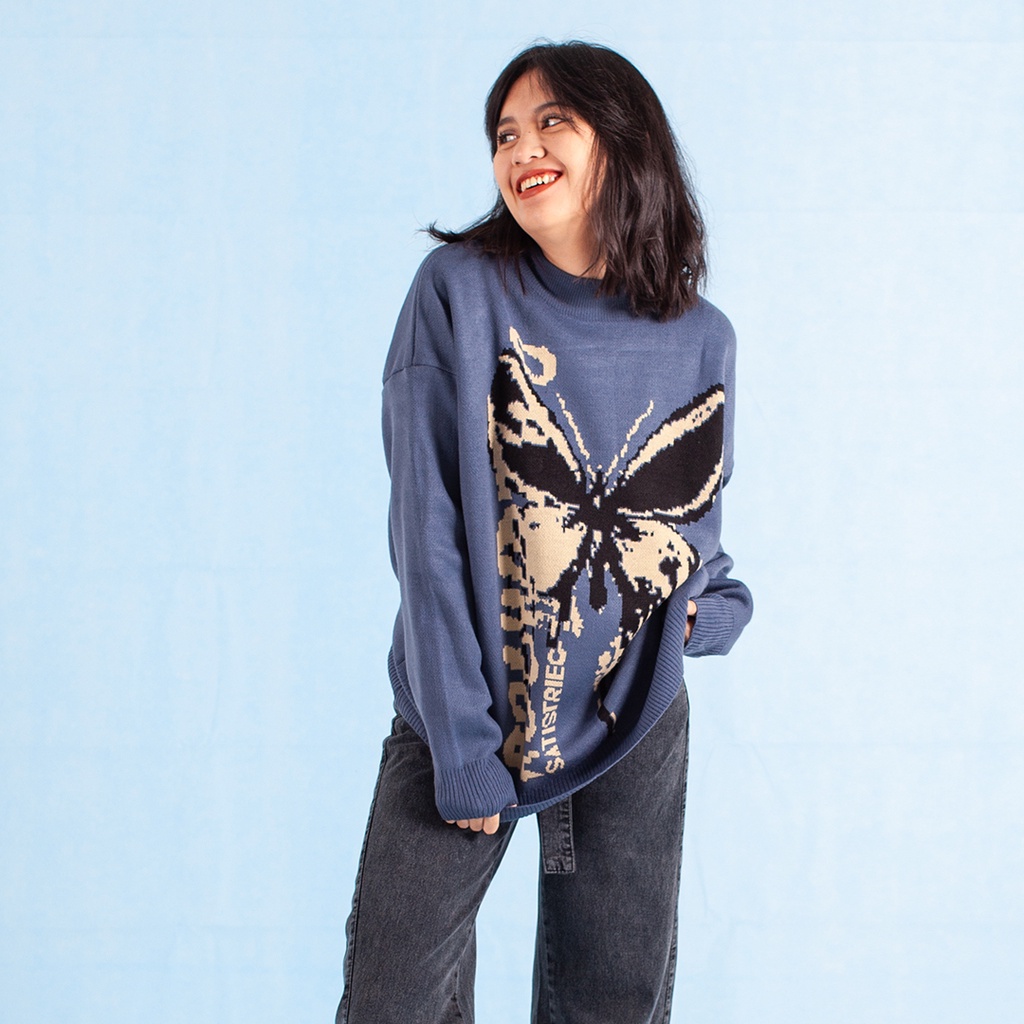Yesyou Butterfly Blue Jeans Oversized Knitwear