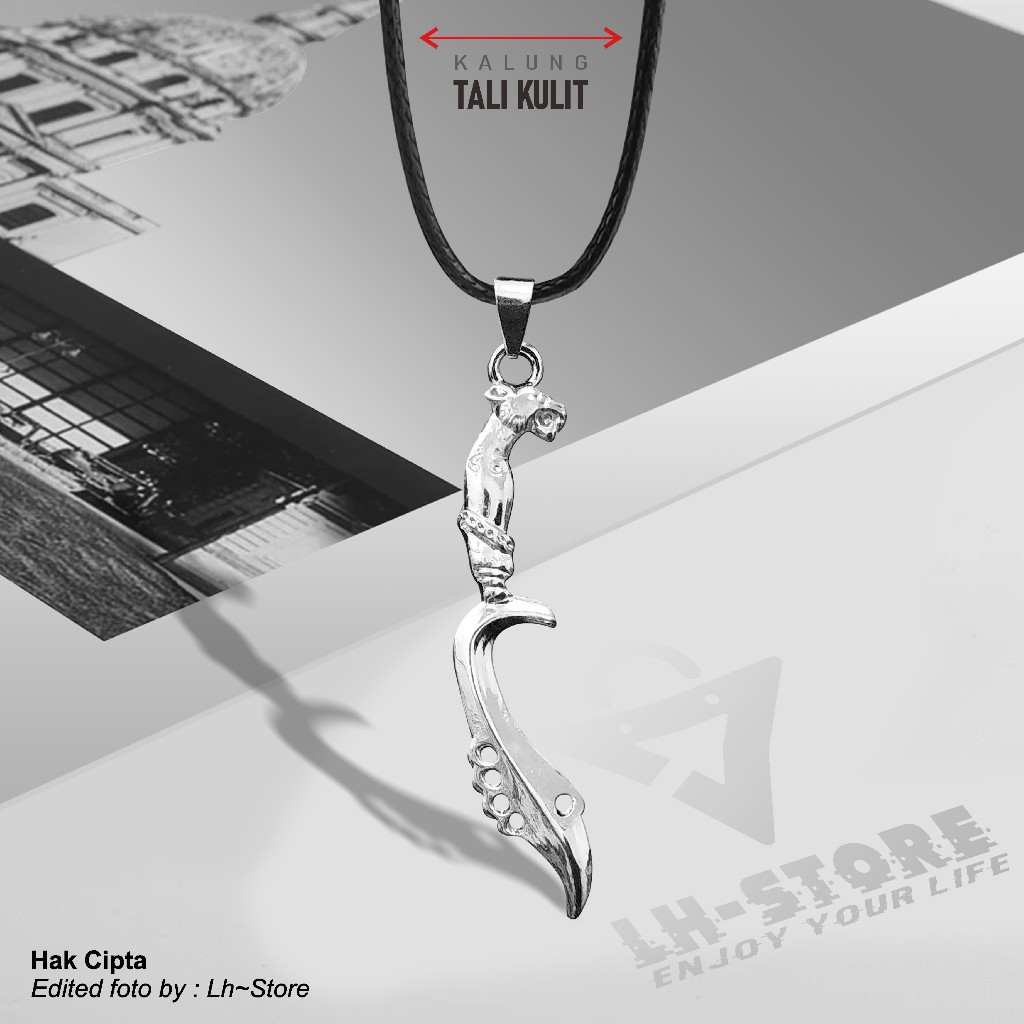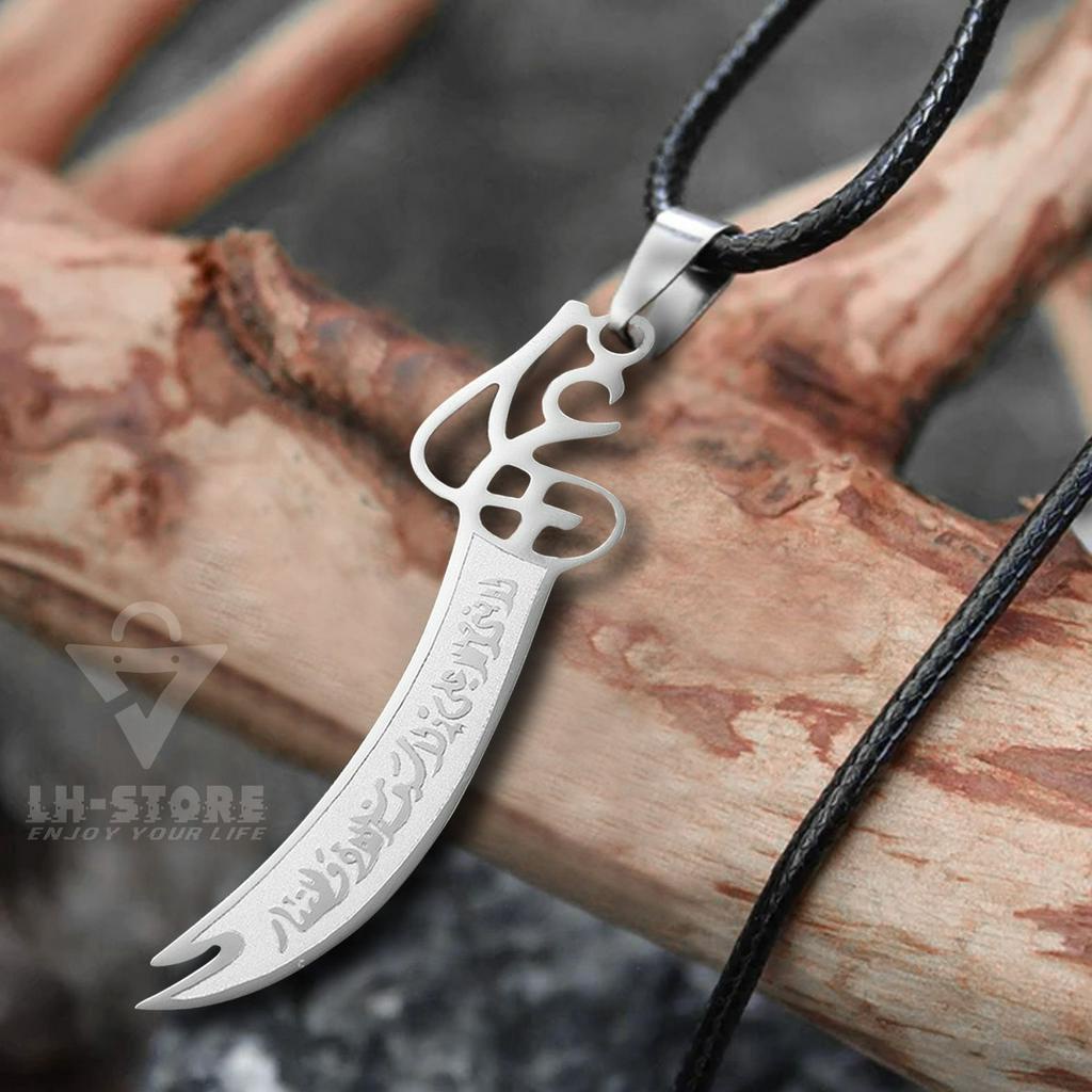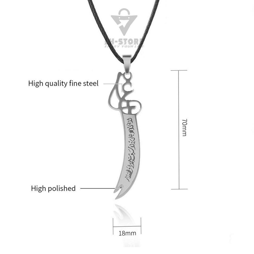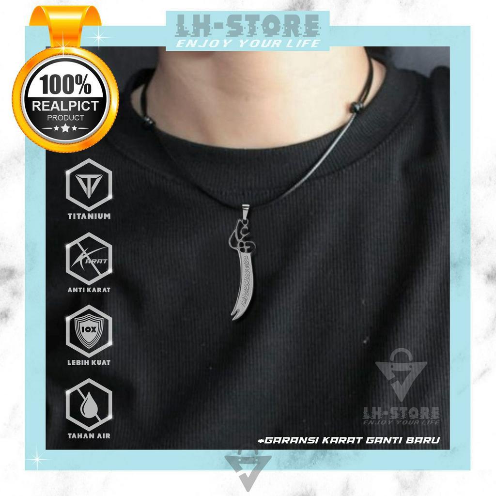 KALUNG TALI KULIT LIONTIN PEDANG ZULFIKAR STAINLEES STEEL ANTI KARAT