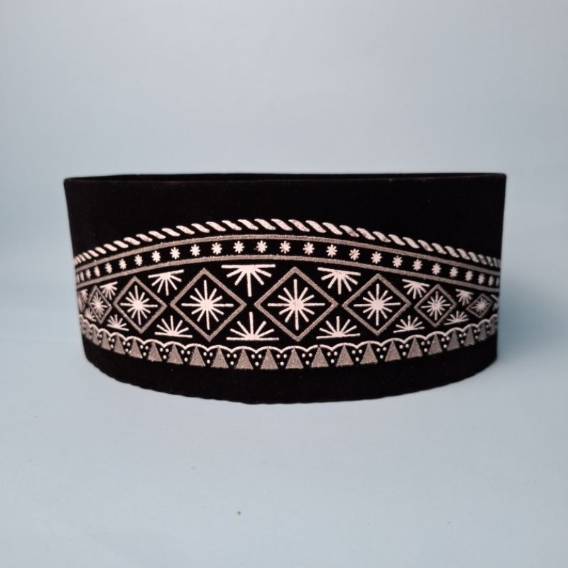 Peci Motif | Peci Lukis Motif Batik Hitam Silver Kuning / songkok motif