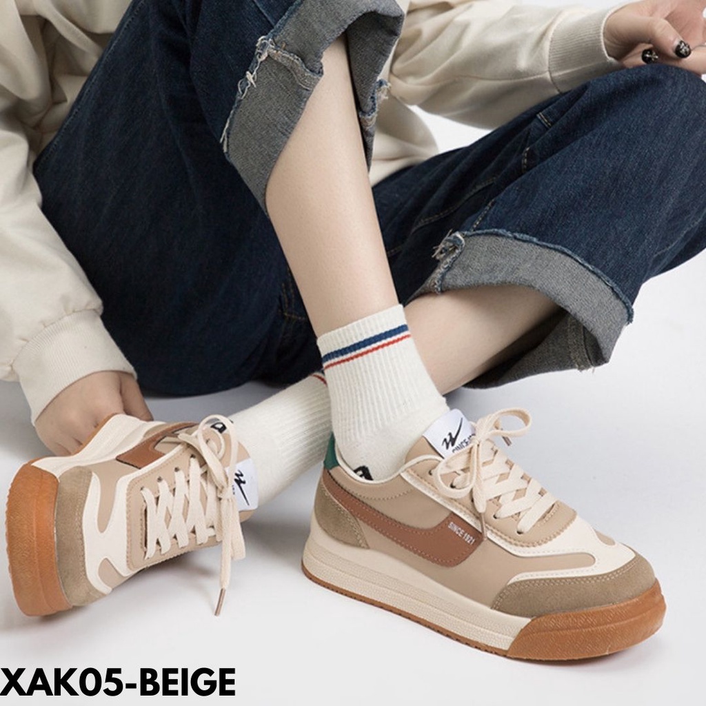 FINDME Sepatu Sneakers Wanita Minimalis Kekinian Nyaman Bahan Kulit Import Ak05