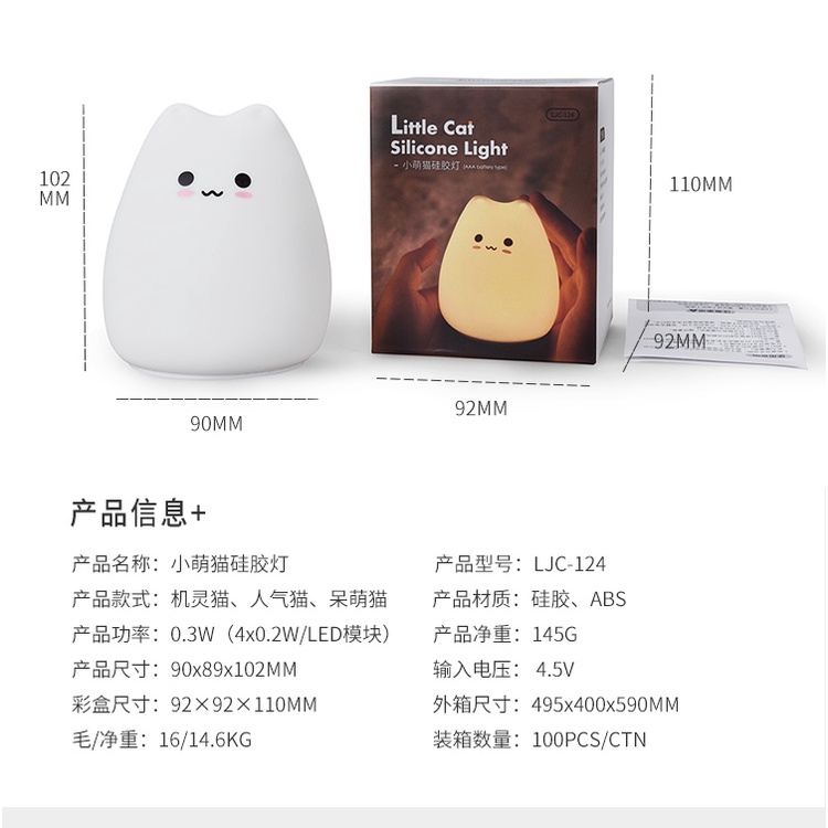 Lampu Tidur Lucu Karakter Kucing Little Cute Cat LED Anak Gemes Warna Warni RGB Dgn Sensor Sentuh Murah
