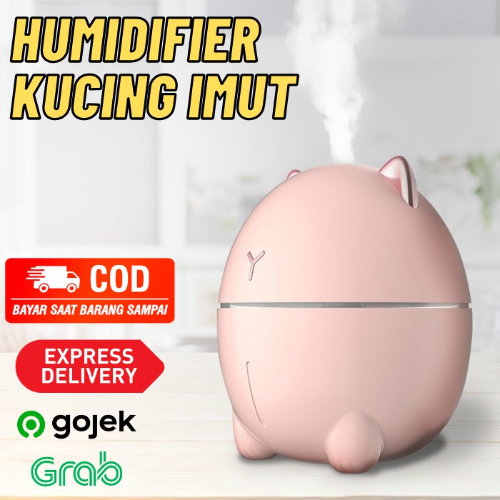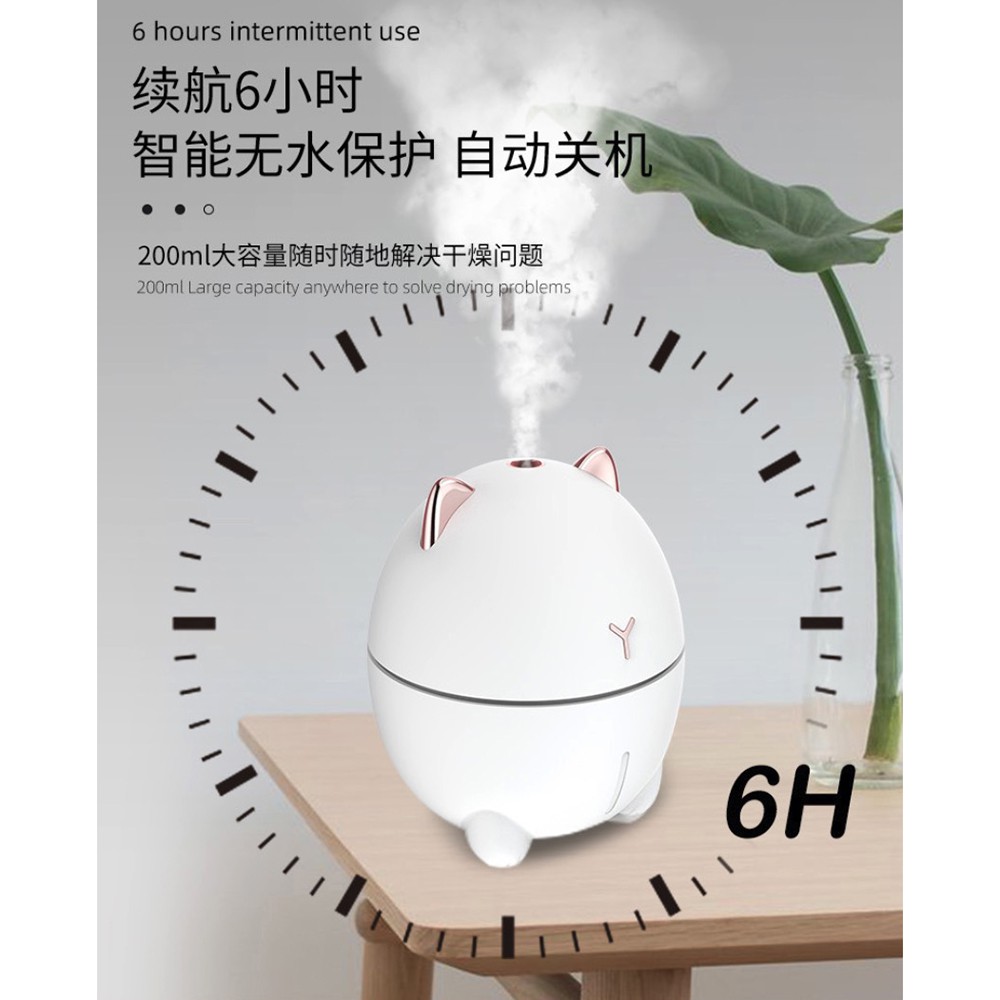 Ultrasonic Air Humidifier Aromatherapy Cat Dudu 200ml Pelembab Udara Diffuser Lucu Unik Kucing