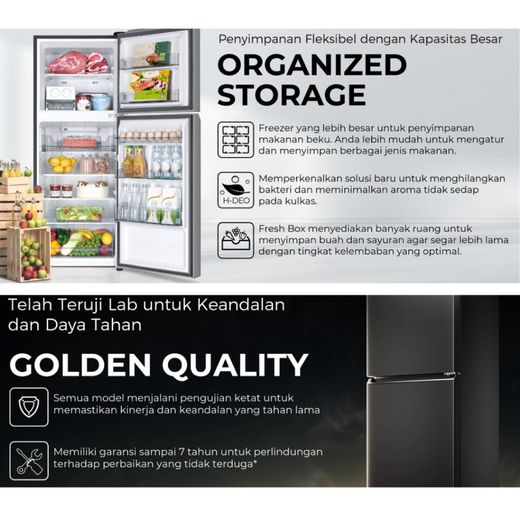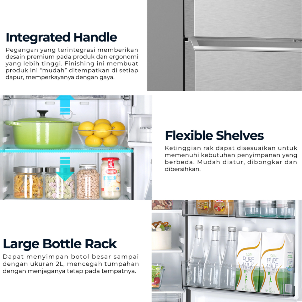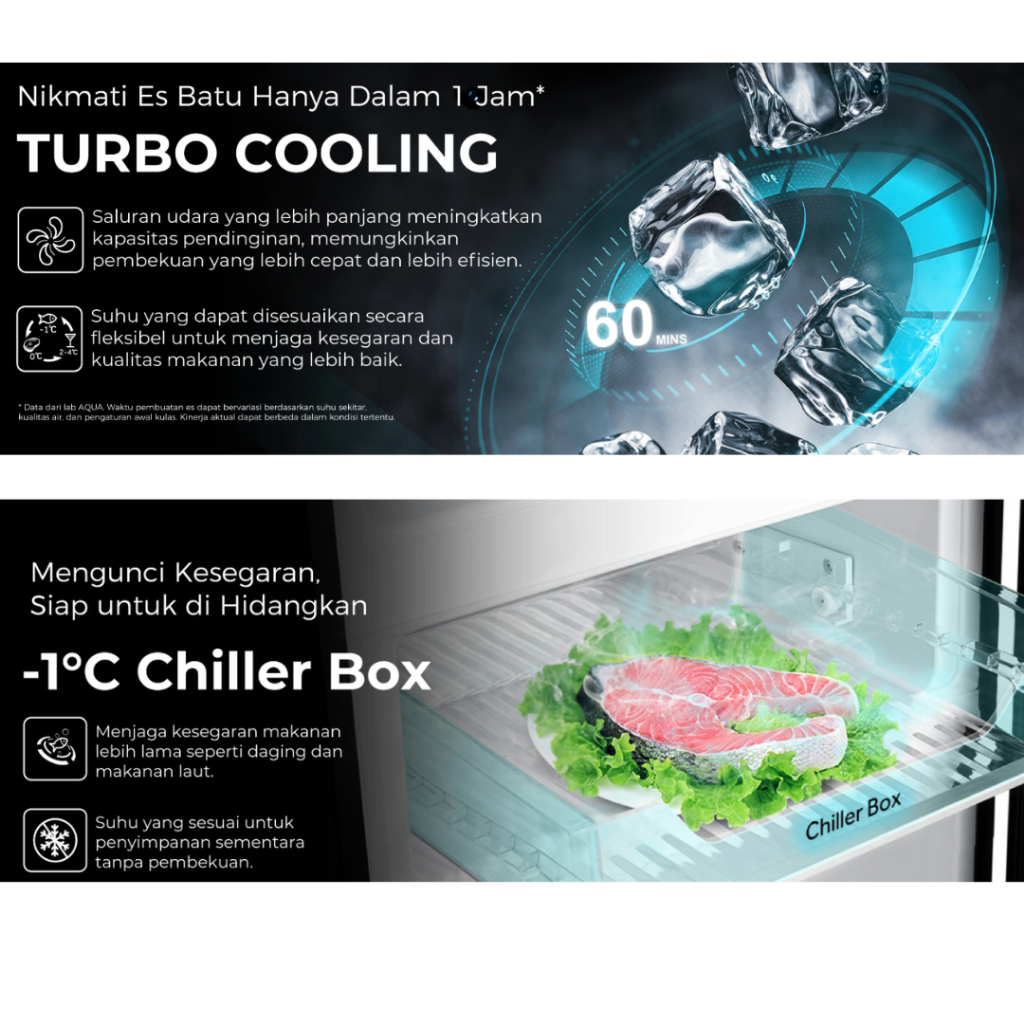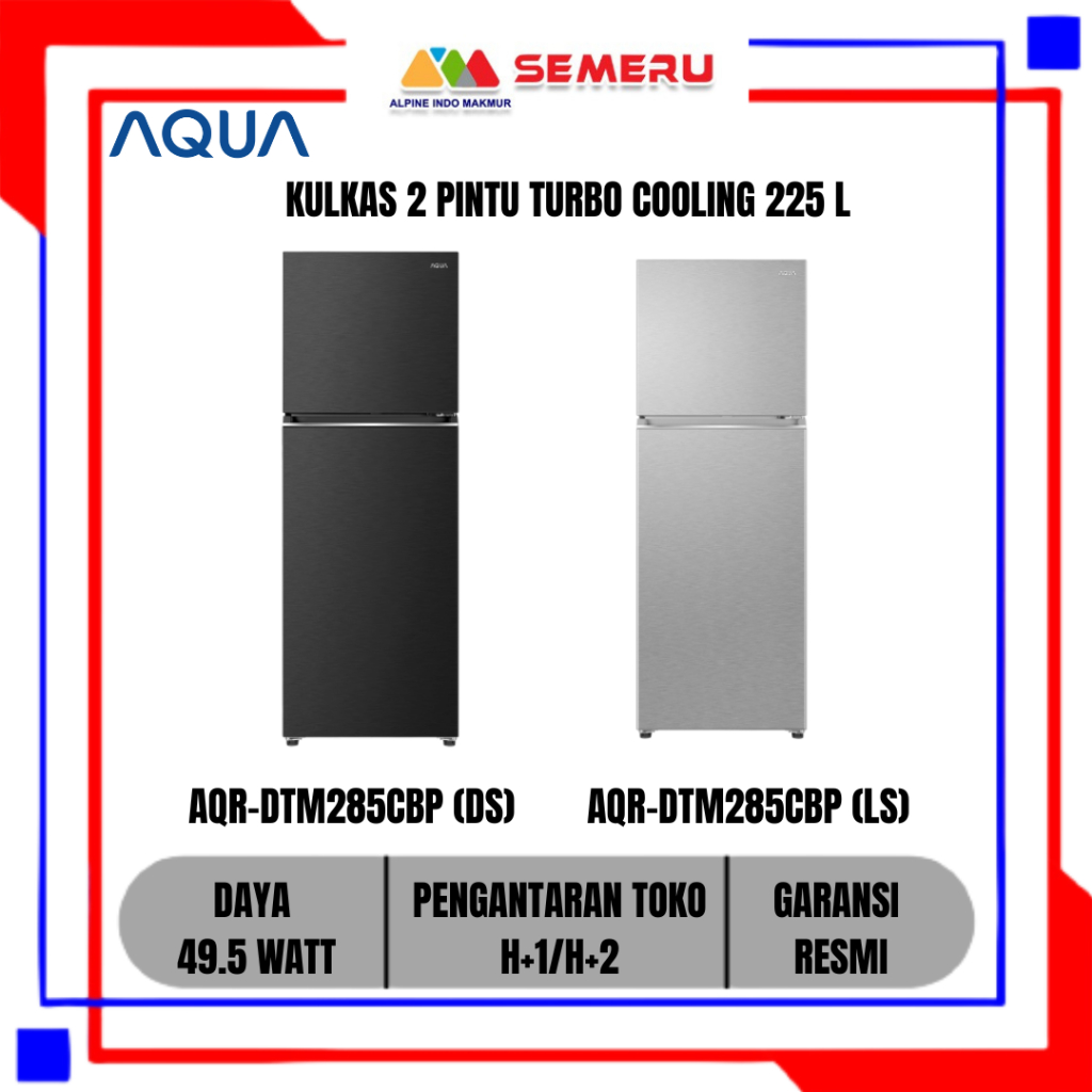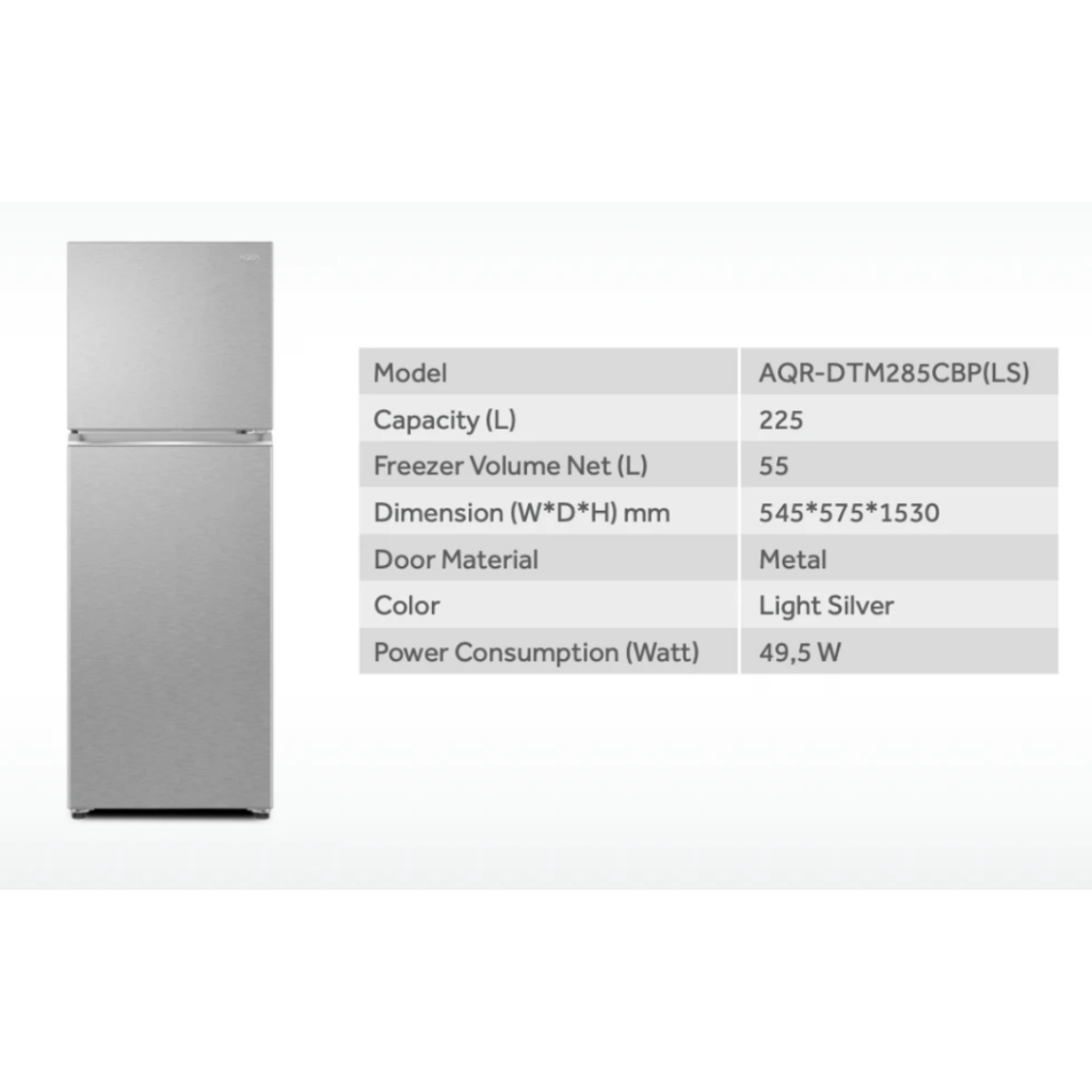 AQUA KULKAS 2 PINTU TURBO COOLING 225 L DAYA 49.5 WATT DARK SILVER AQR-DTM285CBP (DS) & LIGHT SILVER AQR-DTM285CBP (LS)