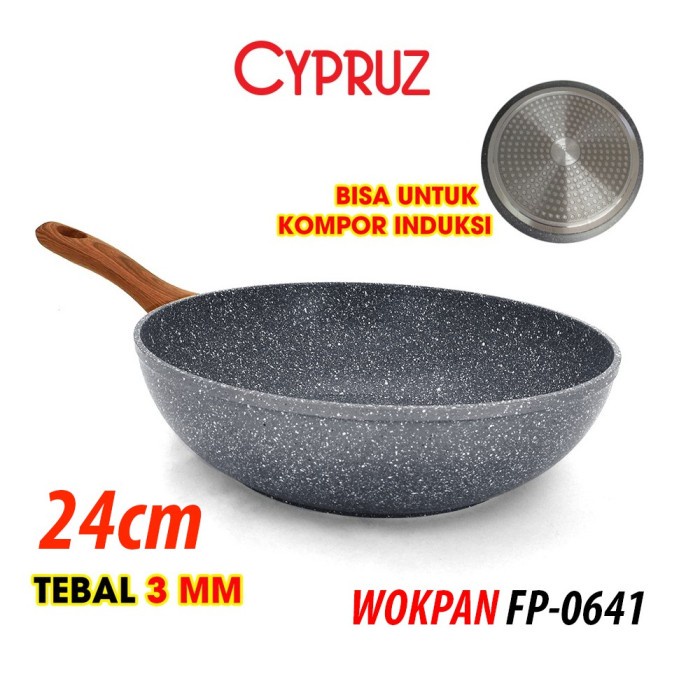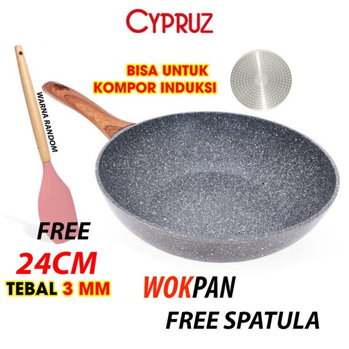 CYPRUZ Wokpan Marble Series Anti Lengket 24CM KL-0641 FREE SPATULA