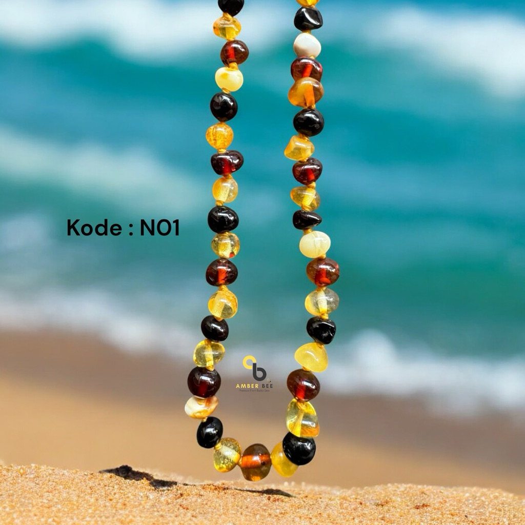 AMBER BEE - [Free Gelang + Aksesoris] Kalung Amber Baltic Bentuk Bulat Untuk Bayi dan Anak Warna Multicolor