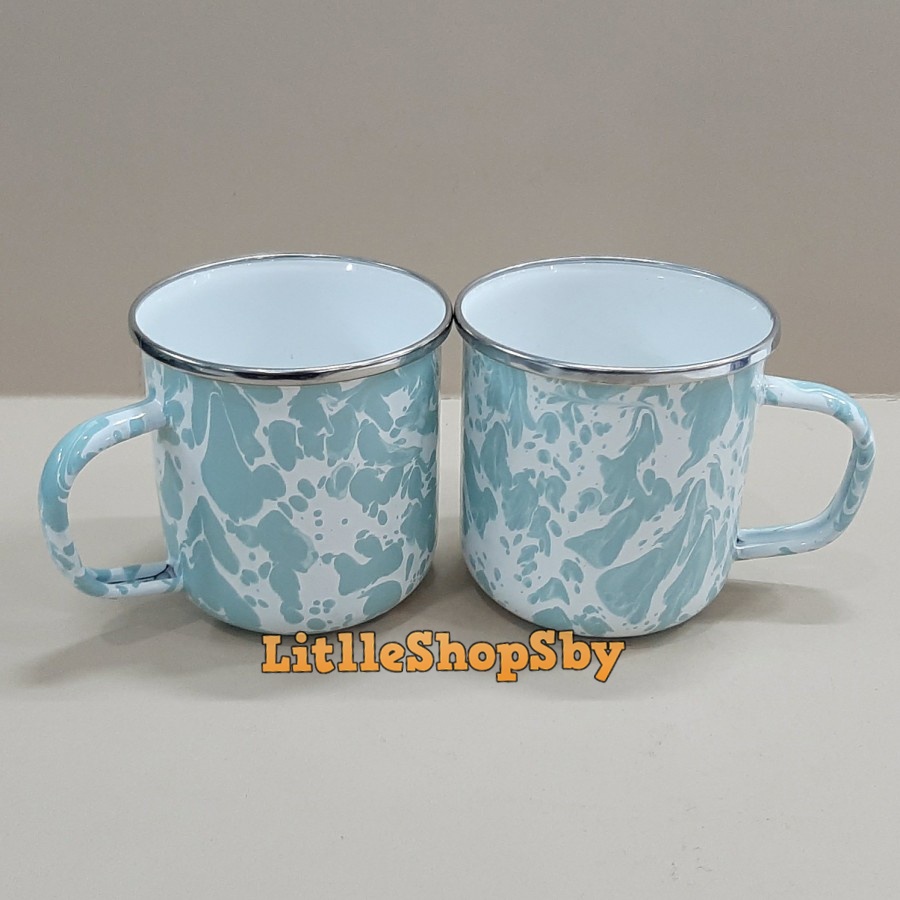 Gelas Mug Cangkir Enamel 9cm Biru Muda tosca blirik Marble doreng