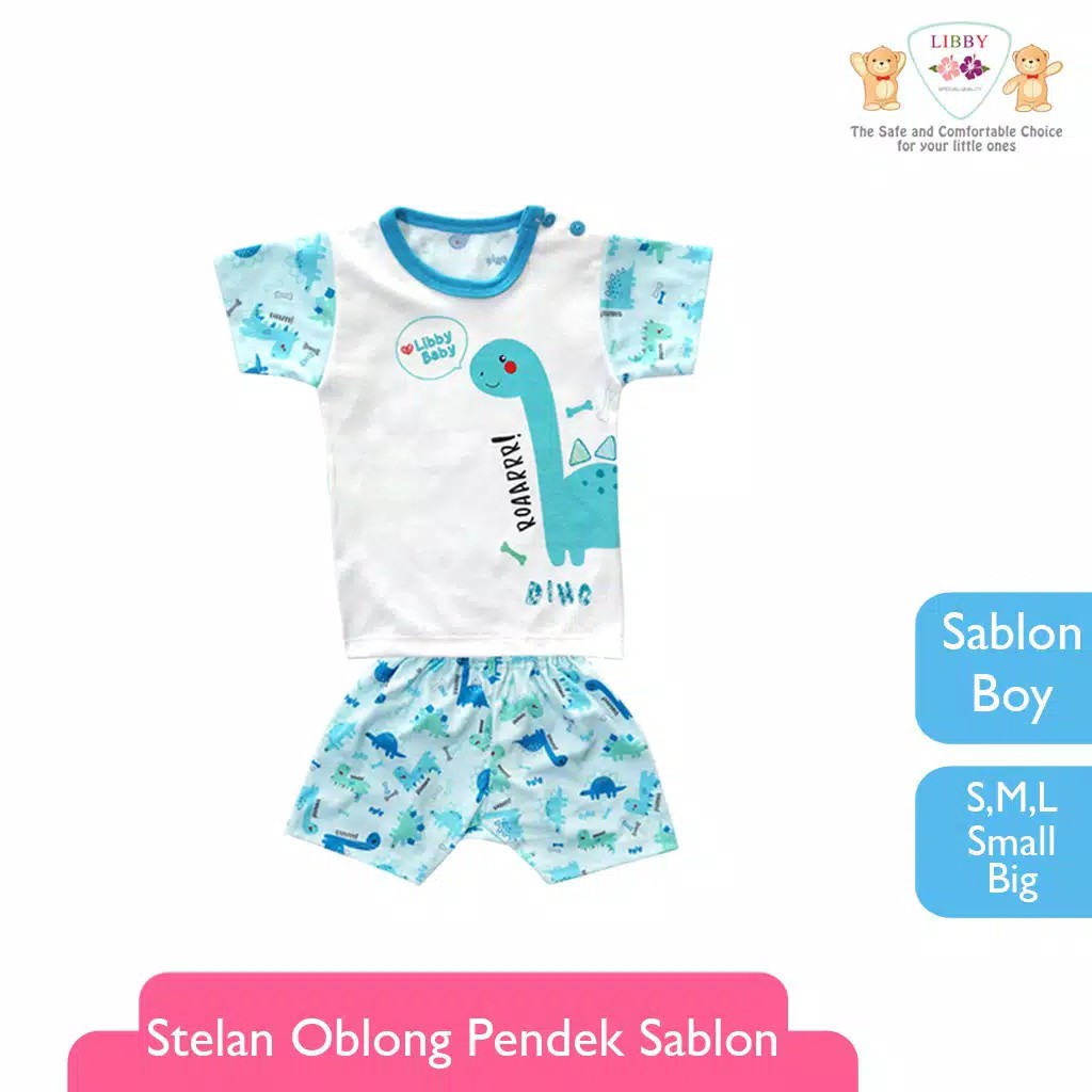 LIBBY SETELAN OBLONG LENGAN PENDEK DAN CELANA PENDEK MOTIF SABLON GAMBAR BOY (ISI 3 SETEL)