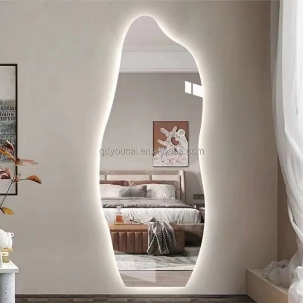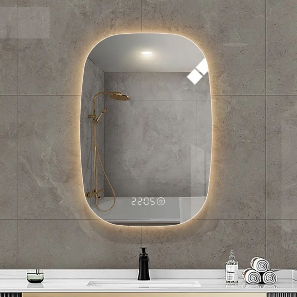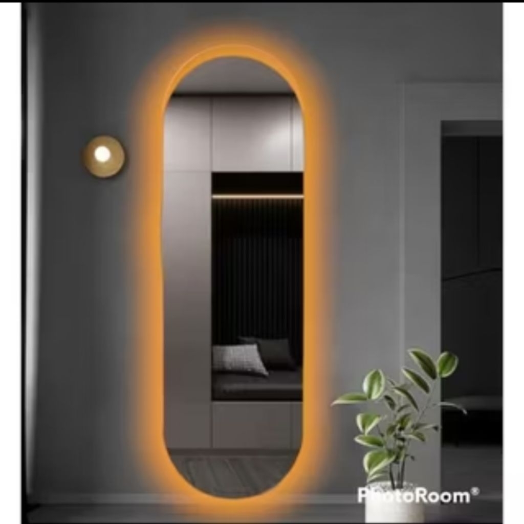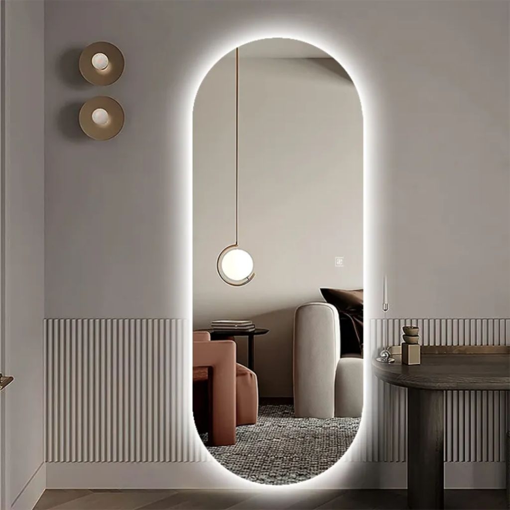 Cermin Kaca Cermin LED Lampu Rias Dinding Fashion Aestetick Bulat Oval Tempel Gantung Fashion Dekorasi Kamar mandi tidur