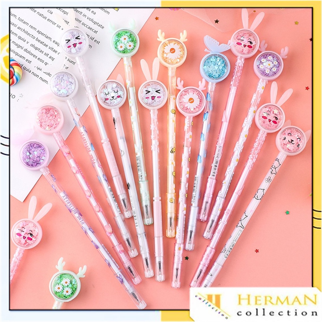 HC Pena Karakter Payet Gliter Bunny Lucu Black Ink Gel Pulpen Murah Gel Bolpen Gel Pastel Alat Tulis Karakter Kupu-Kupu Perlengkapan Sekolah Kantor Murah