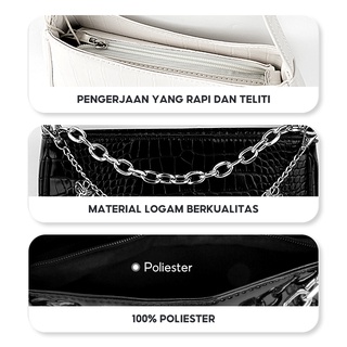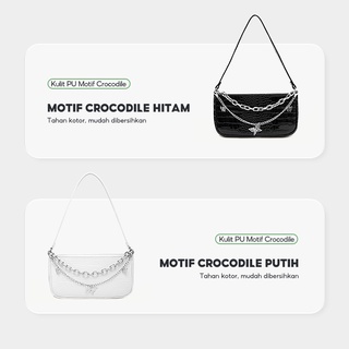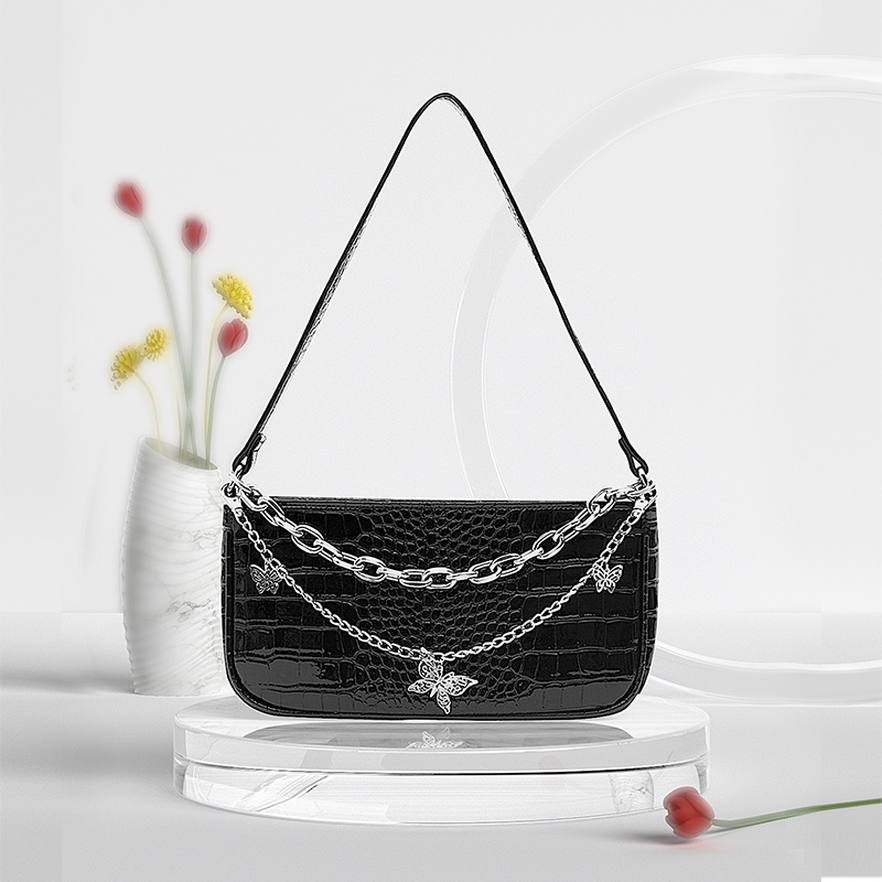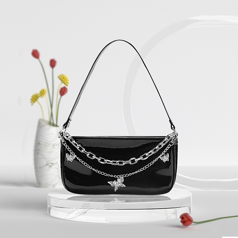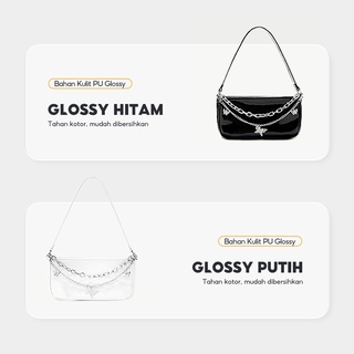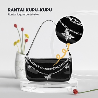 KKV - Dunns Tas Bahu Wanita Kulit Hitam Glossy Black Leather Shoulder Bag Butterfly Chain