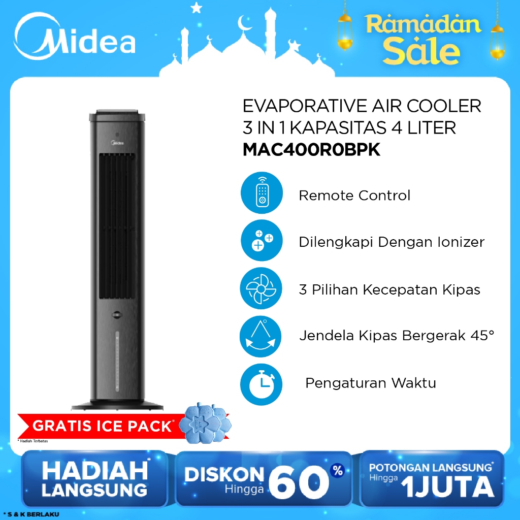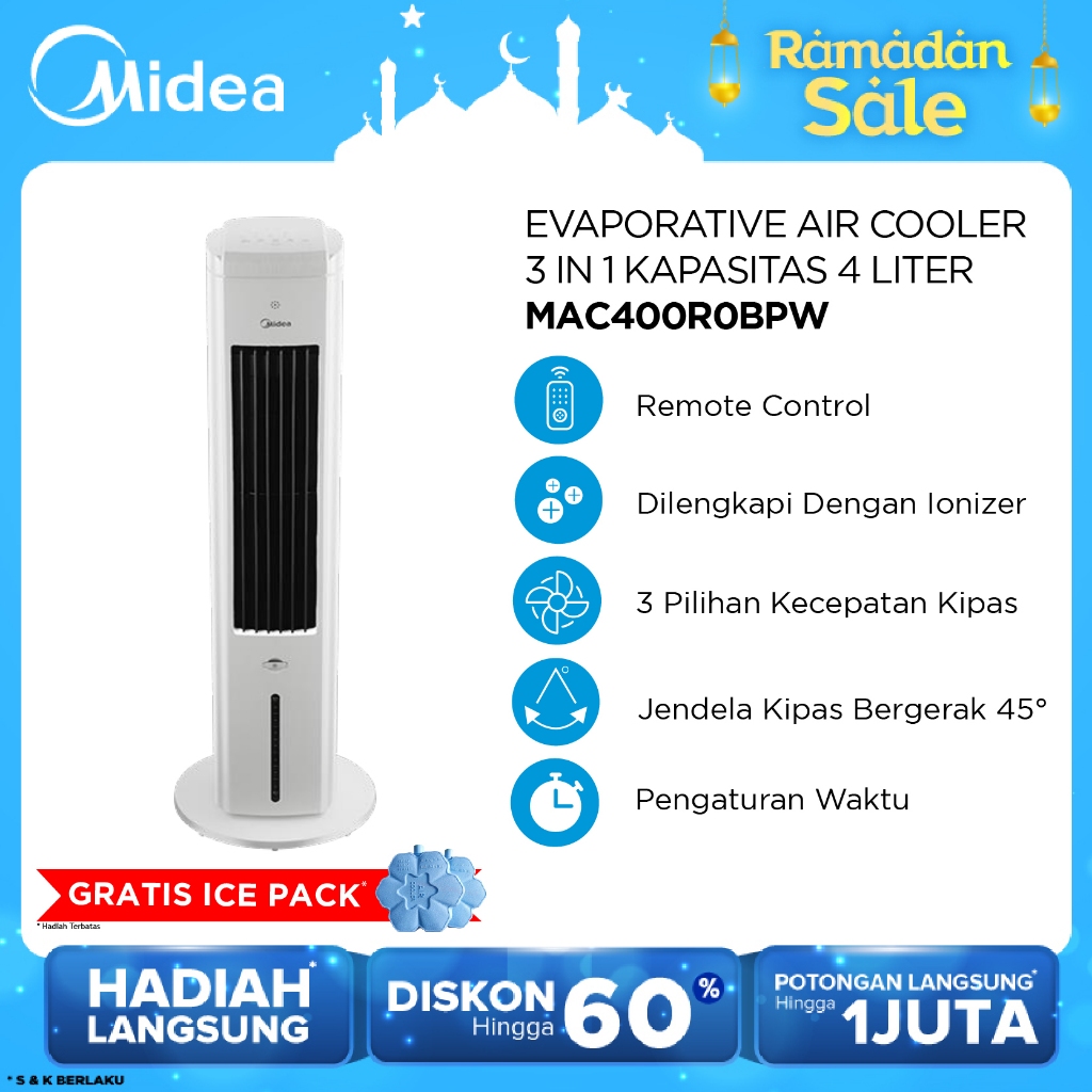 [HARGA DISKON] Midea 3-in-1 Evaporative Air Cooler - MAC400R0BPW (4L) - Remote and Ionizer Technology Gen 2