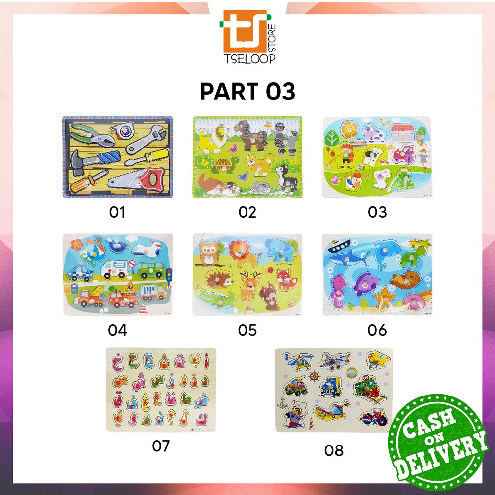 OFM-M67-68 Mainan Edukasi Anak Puzzle Kayu Knob Background Bergambar | Wooden Toys Mainan Balok Kayu