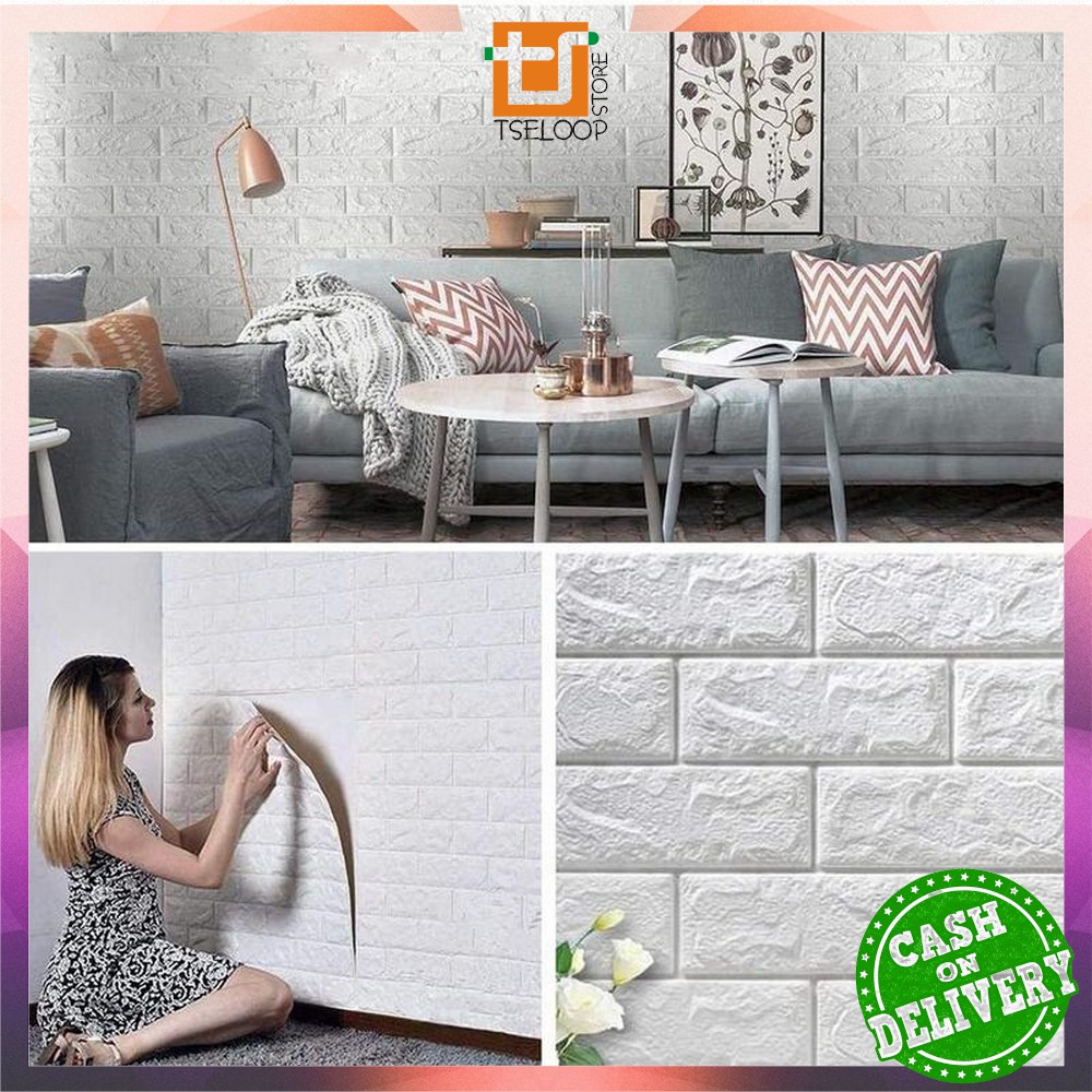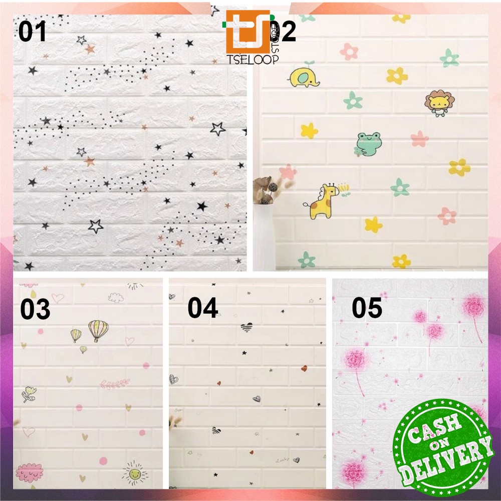 OFM-C55-58 Wallpaper Dinding 3D Wall Sticker Foam Batu Bata Walpaper Dinding Murah WallSticker Kayu
