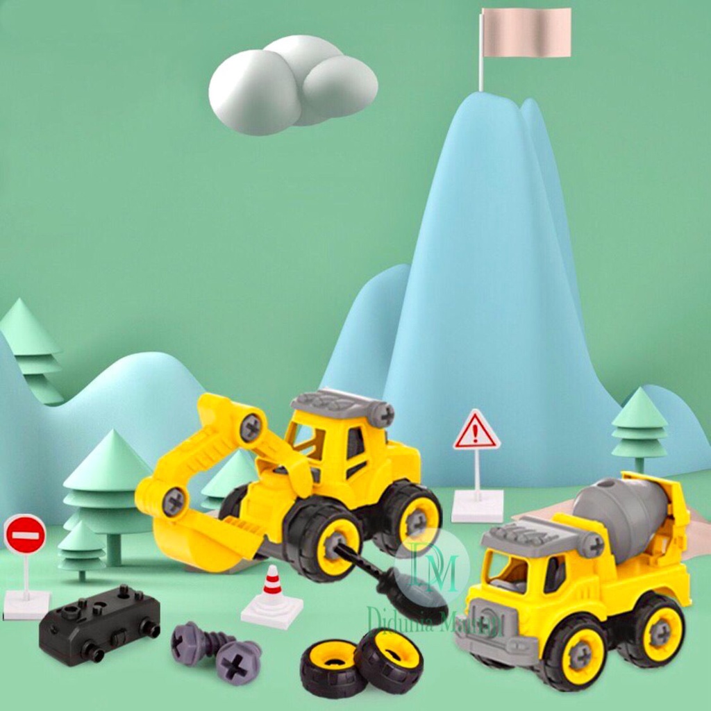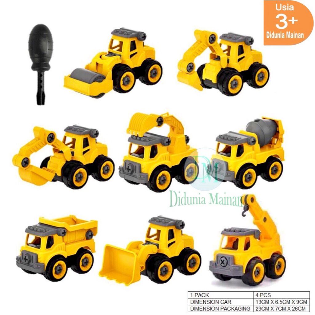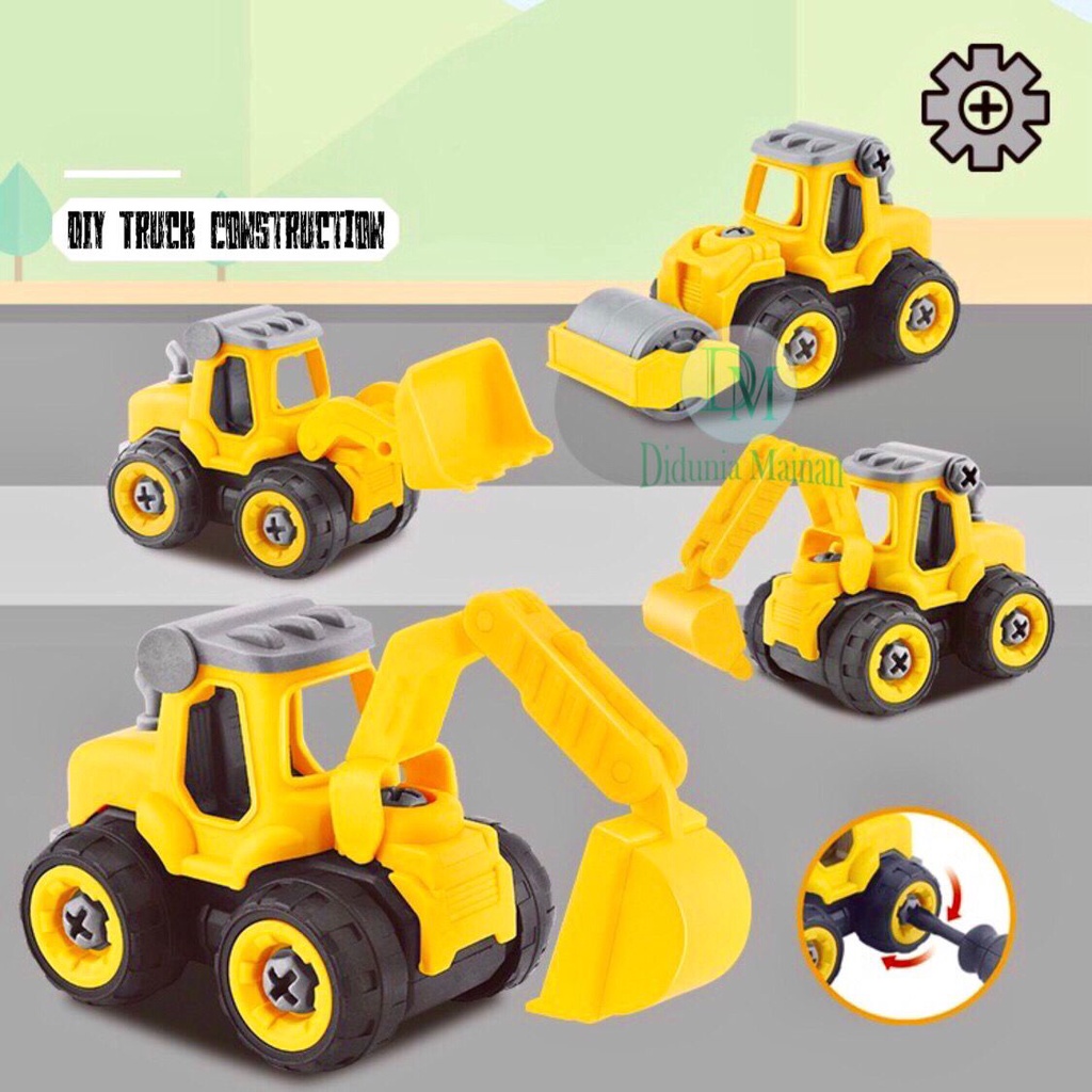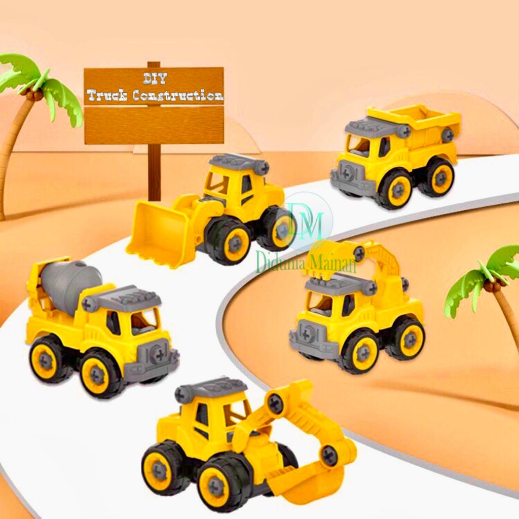 Mainan Edukasi Anak Mobil Mobilan DIY Truk Konstruksi Bongkar Pasang Truck Set Alat Berat Isi 4 Pcs