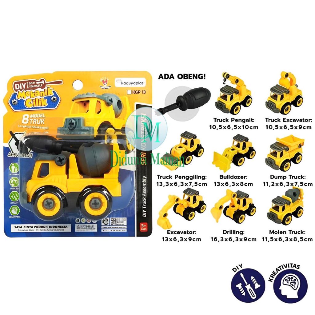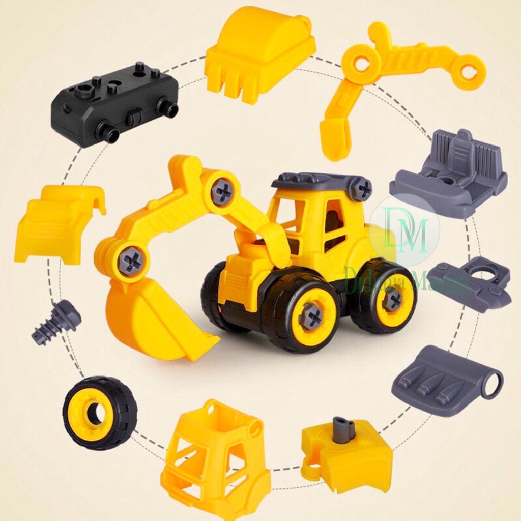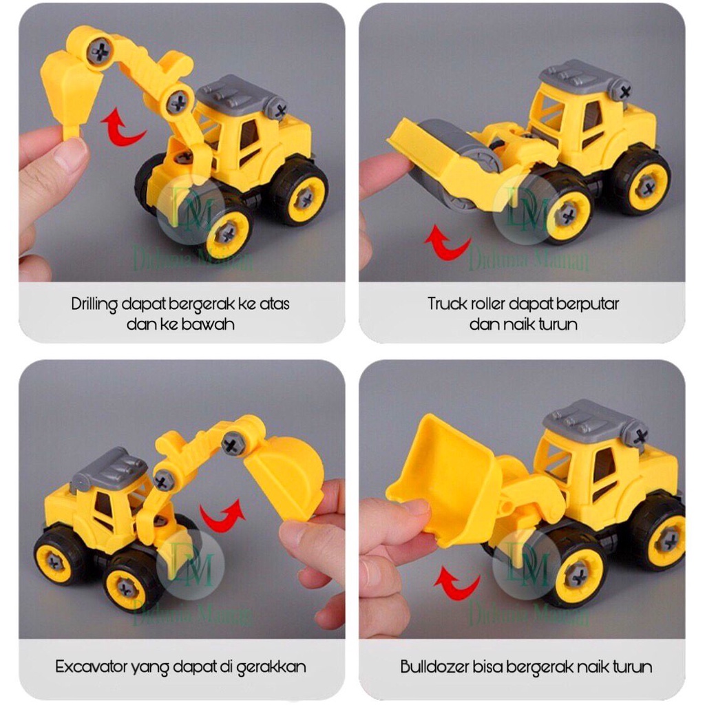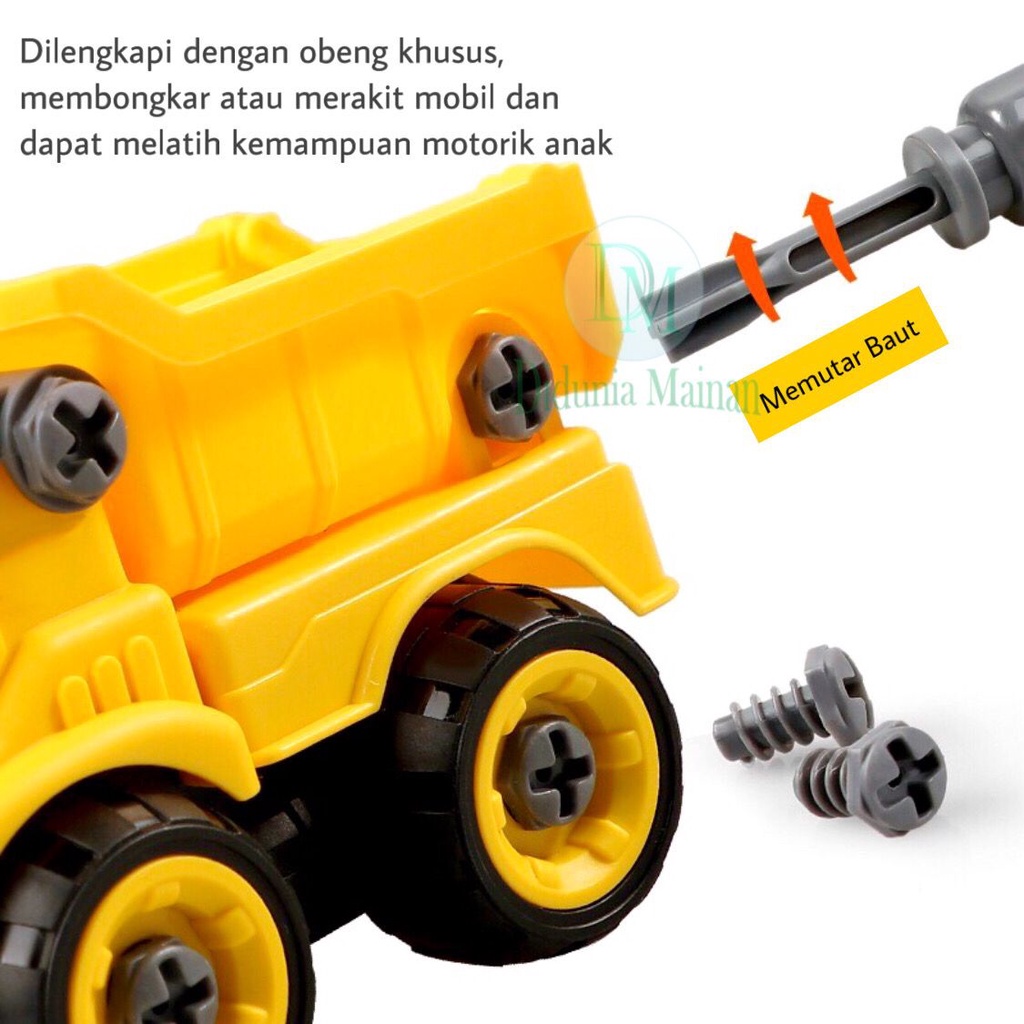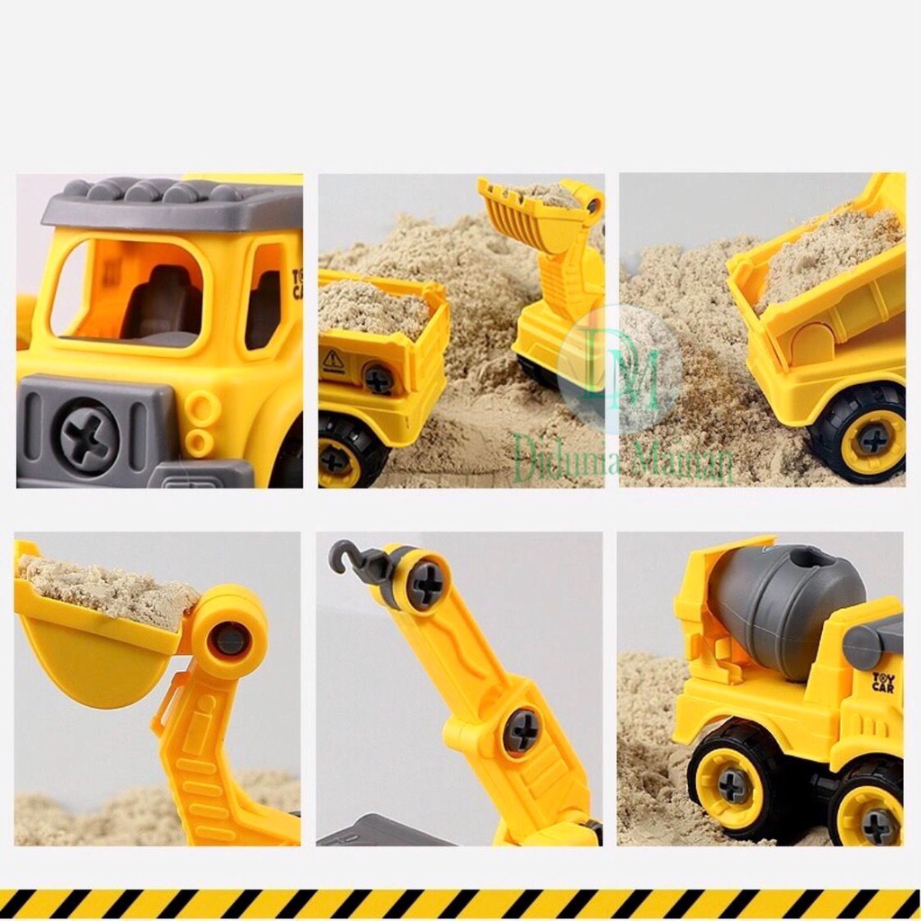 Mainan Edukasi Anak Mobil Mobilan DIY Truk Konstruksi Bongkar Pasang Truck Set Alat Berat Isi 4 Pcs