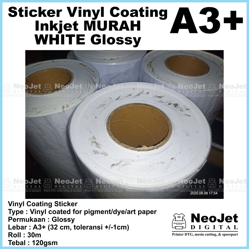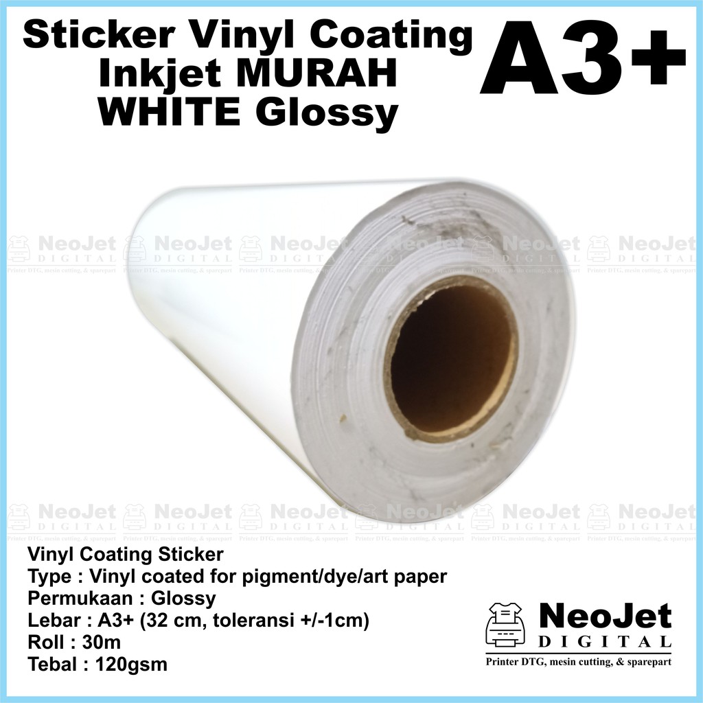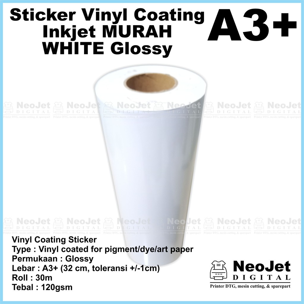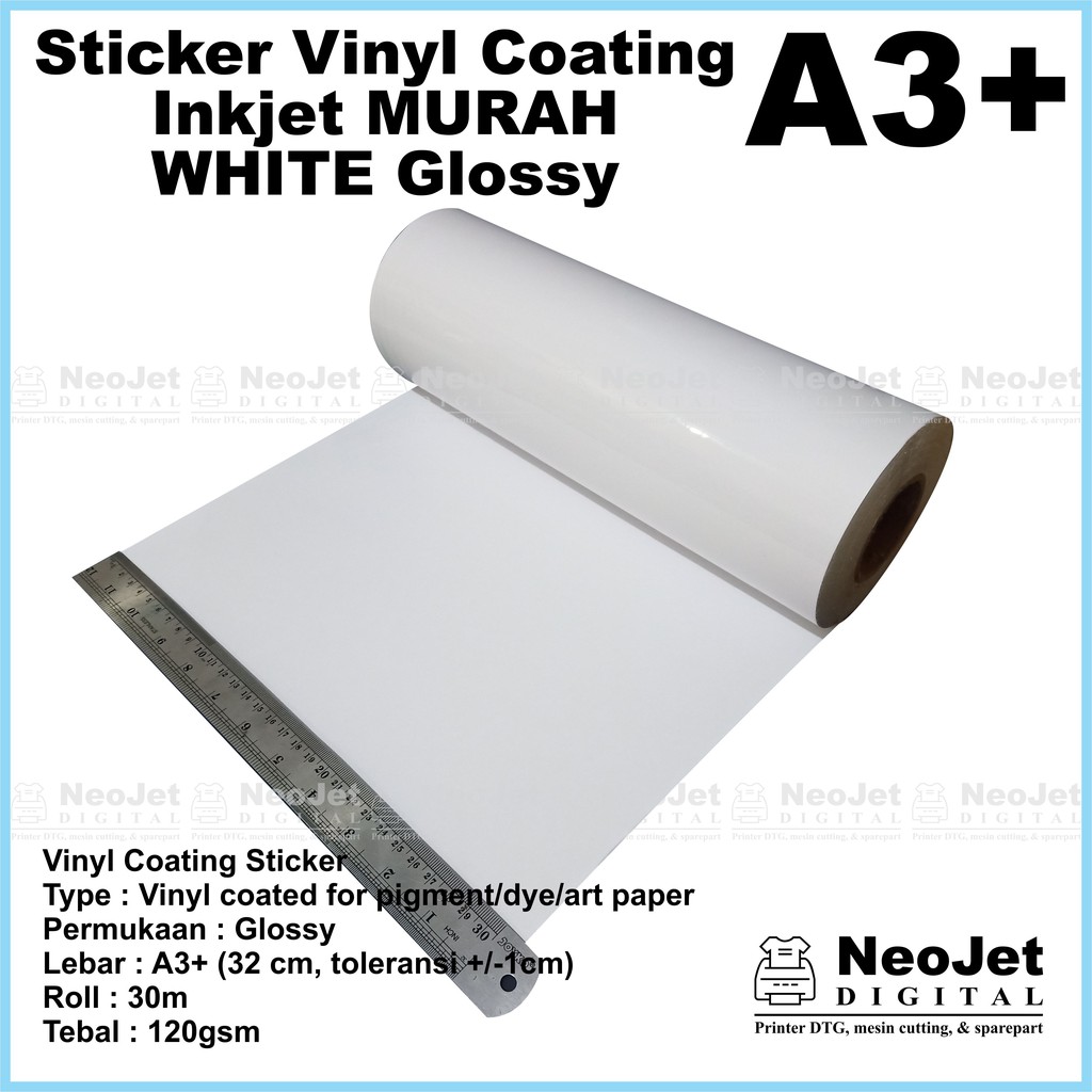 Sticker Vinyl Coating Inkjet Printer 30 m White Gloss A3+ Tinta DYE Pigment Art Paper