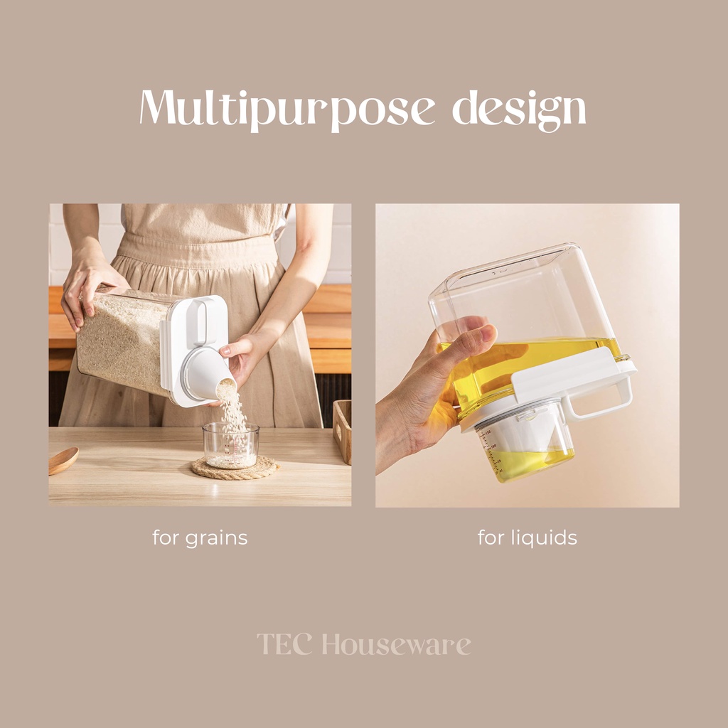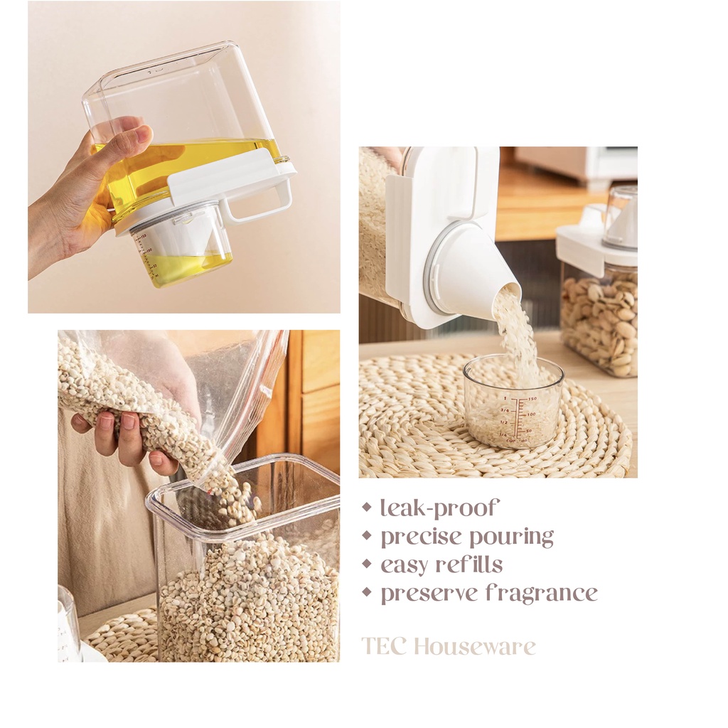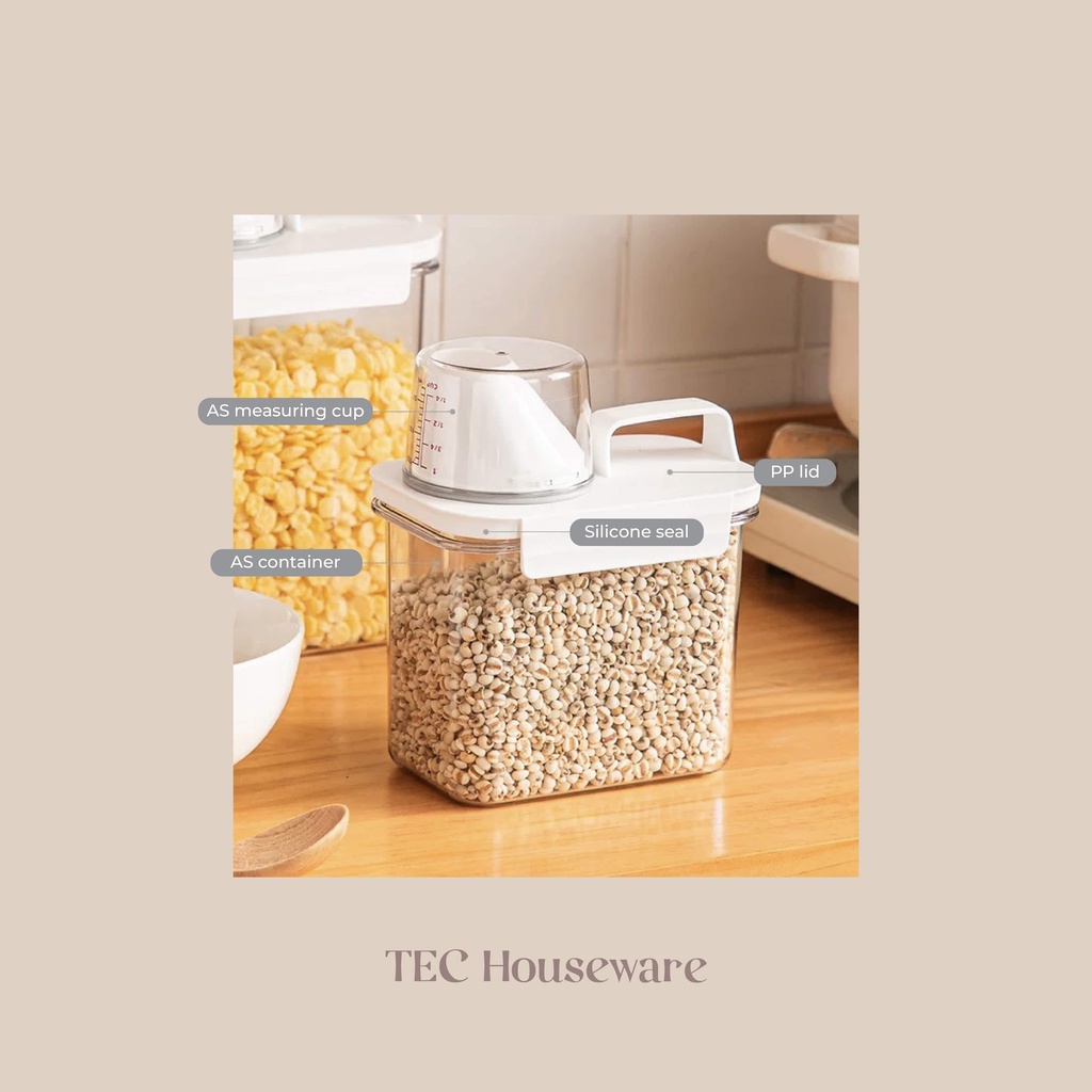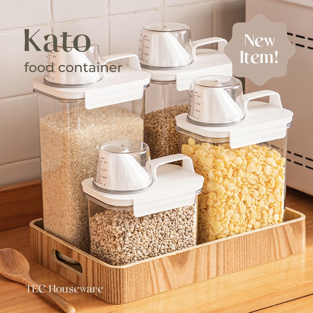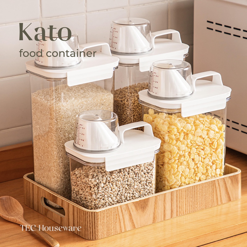 Toples Tempat Penyimpanan • TEC • KATO Toples Cereal Penyimpanan Serbaguna Makanan Dry Food Container Toples Beras Biji-bijian Wadah Penyimpanan Beras Tempat Penyimpanan Serbaguna dengan Gelas Ukur
