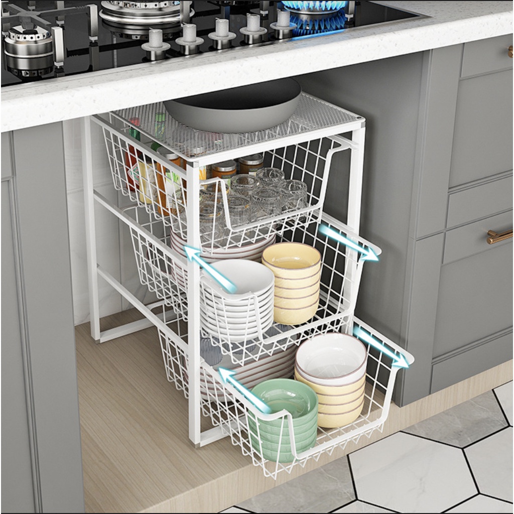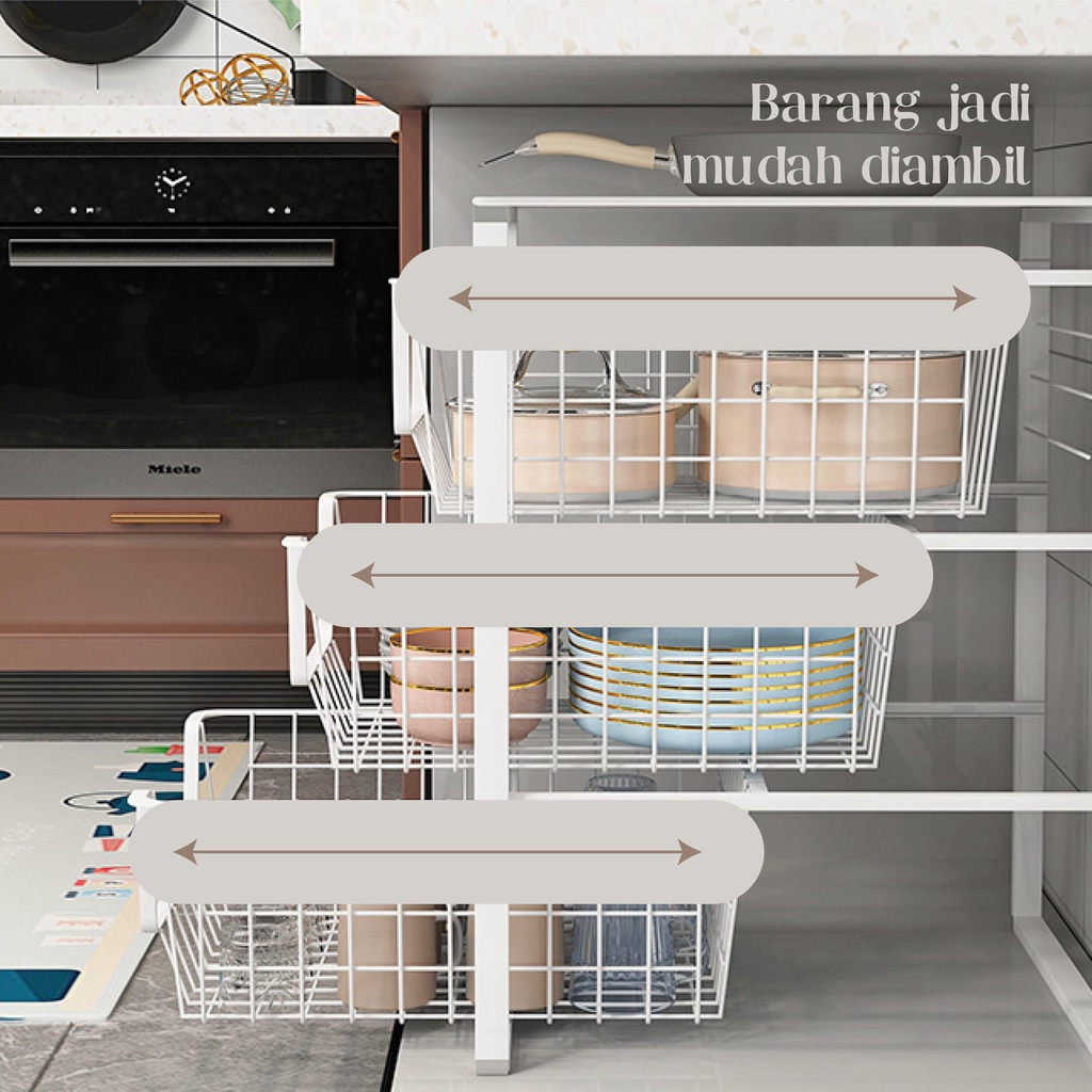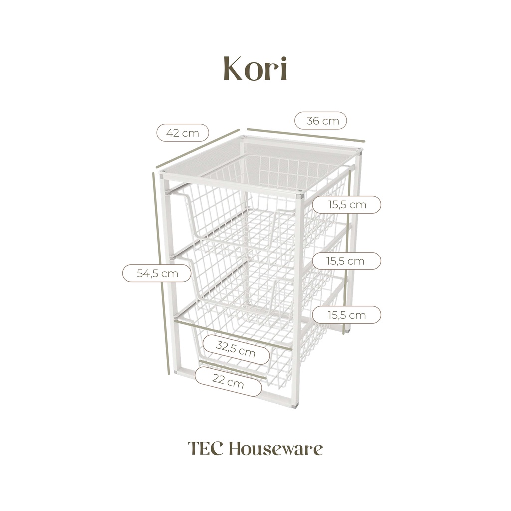 Rak Penyimpanan Organizer •TEC • KORI Rak Dapur Laci Serbaguna Rak Bawah Wastafel Perlengkapan Dapur Rak Kokoh Rak Laci Geser Keranjang Rak Dapur Nordic Style Rak Tarik