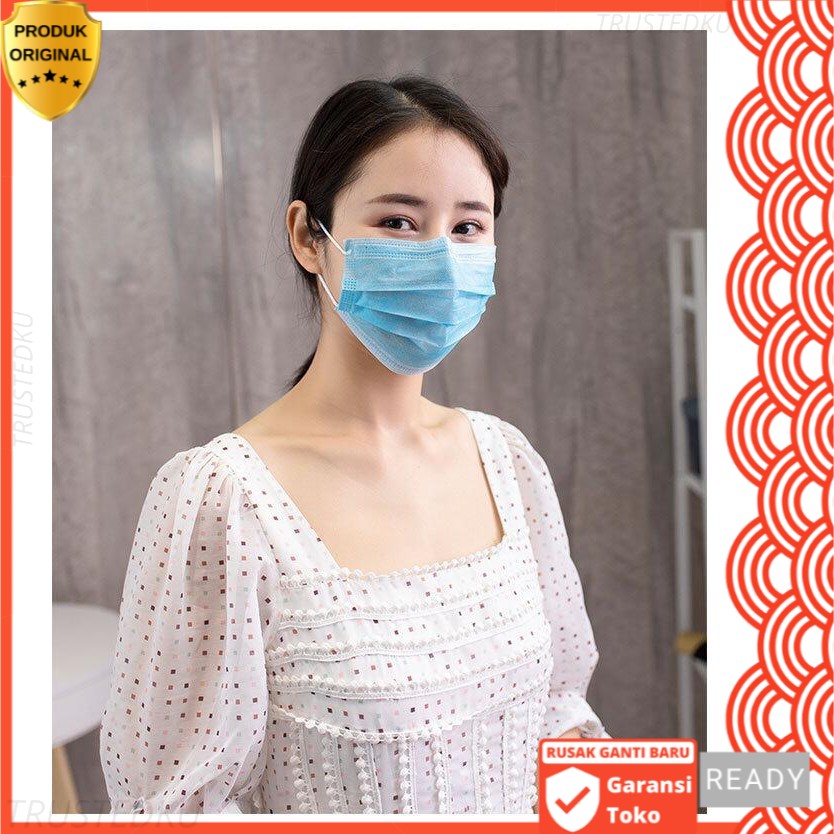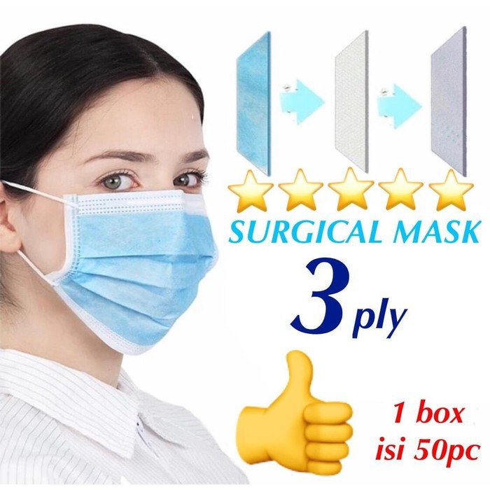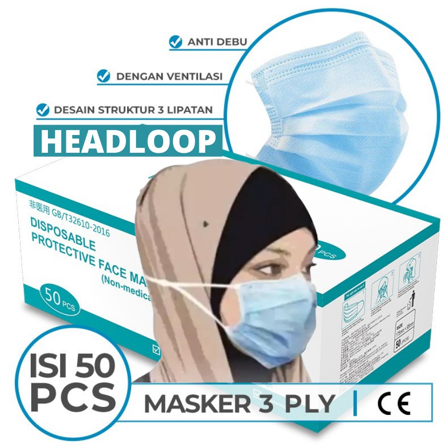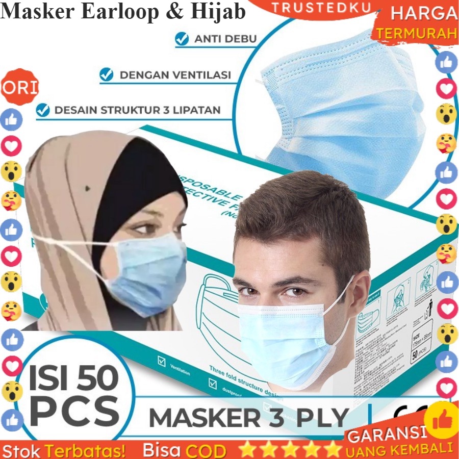 MASKER 3 PLY ASLI isi 50 pcs Box COD Mask Medis Virus Bedah Hijab Headloop Tali Cantol Earloop 3 Lapis Isi 50 Dengan Kotak Original tebal Tidak Pengap Bahan Berkualitas Isolasi Mandiri Isoman FDE Bersertifikat Asli Termurah