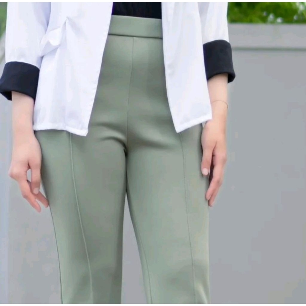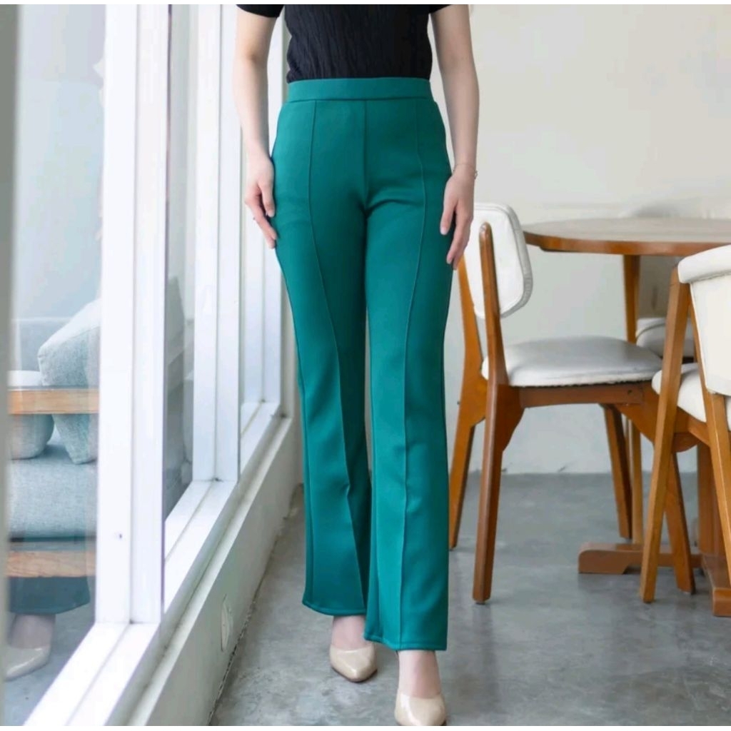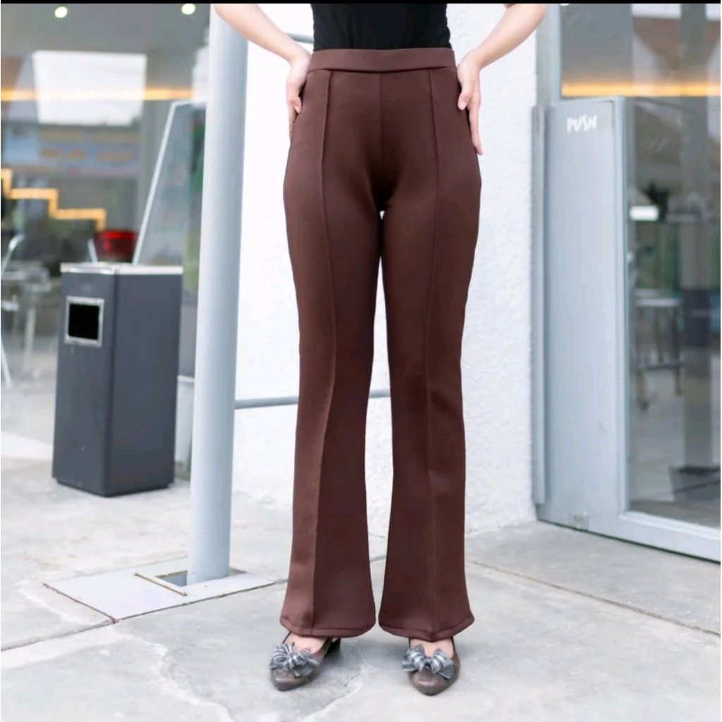 HERL Apparel - Celana Scuba Cutbray Jumbo Wanita – High Waist Stretch Nyaman, Slim Look Kekinian