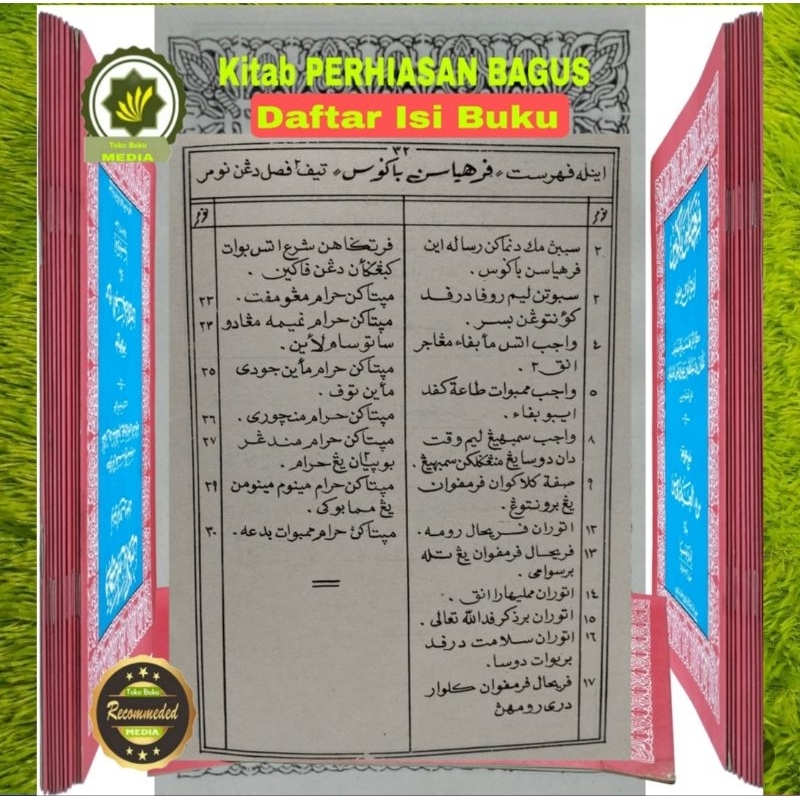 Kitab Arab Melayu Judul PERHIASAN BAGUS & PERUKUNAN MELAYU Sifat 20 Panduan Siswa & Umum Berbahasa Indonesia Tulisan Arab Membahas Kewajiban Mengajar Anak Agar Taat Kepada Orang Tua Shalat Lima Waktu Berhias Aturan Keluar Rumah dll Syeikh Usman bin Alawi