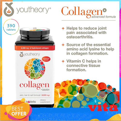 Youtheory Collagen 6000mg Plus Biotin and Vitamin C 390 Tablets