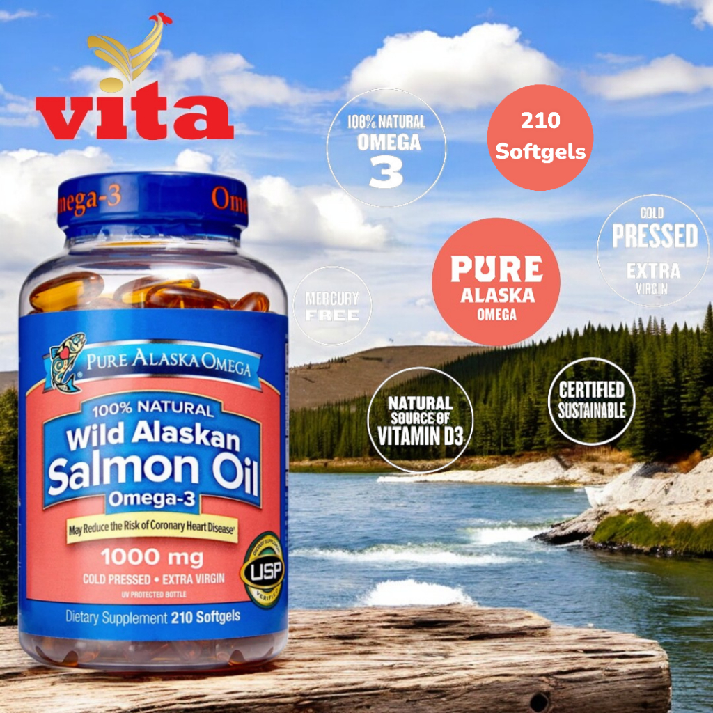 Salmon Fish Oil Omega-3 Wild Alaskan Minyak Ikan1000 mg 210 Soft Gel