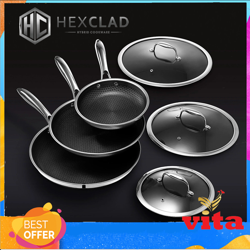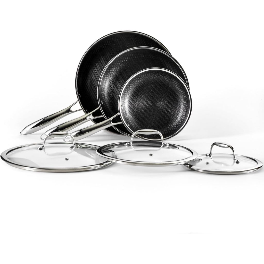Wajan HexClad Hybrid Nonstick Frying Pans Glass Lids Stay-Cool Handles
