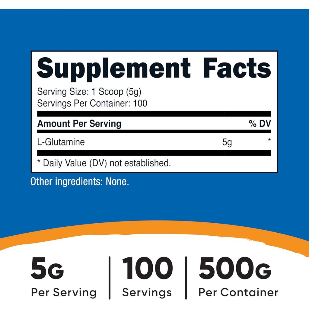 NUTRICOST L-Glutamine 500 Grams Nitrogen Transporter Amino Acid Vegetarian Lglutamine Powder