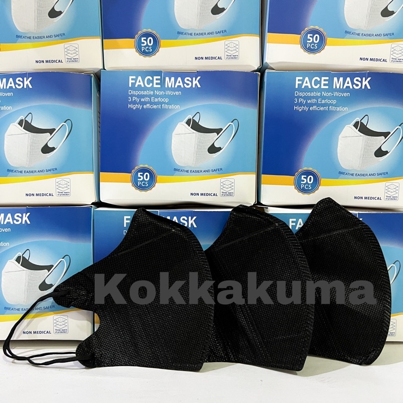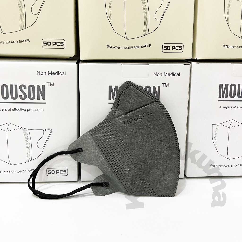 Masker Mouson Duckbill Garis 4 PLY isi 50 pcs Dewasa Disposable Mask Dewasa Hitam / Putih10RB+