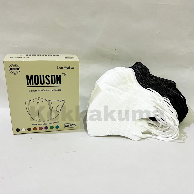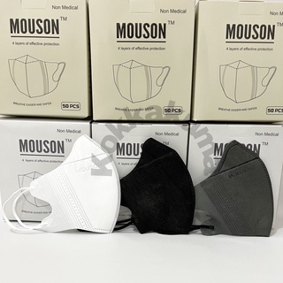 Masker Mouson Duckbill Garis 4 PLY isi 50 pcs Dewasa Disposable Mask Dewasa Hitam / Putih