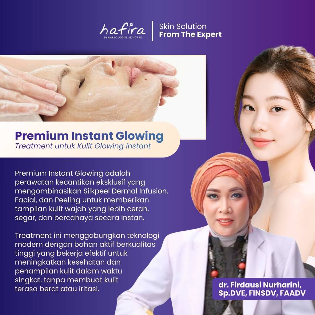 Premiun Instant Glowing Treatment by Hafira Gabungan 3 Perawatan Silkpeel Dermal, Facial & Peeling