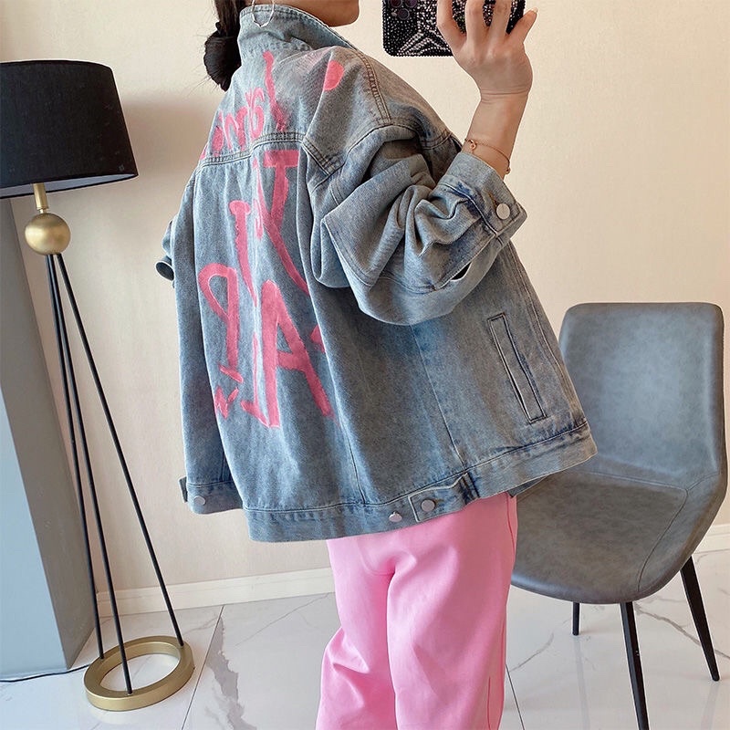 PRE ORDER IMPORT - Jacket Jeans Oversize Import Printed Denim Gaya Sporty Amerika Musim Gugur Korean Style