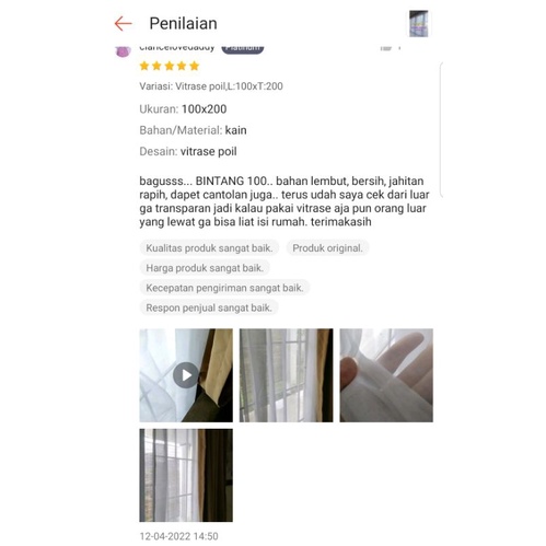 Vitrase Gorden polos premium Dalaman Gorden Putih Murah