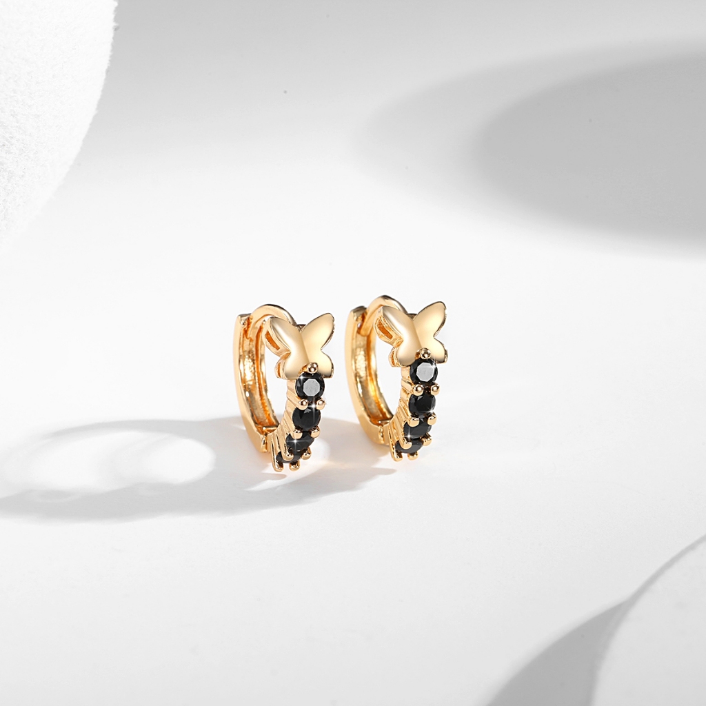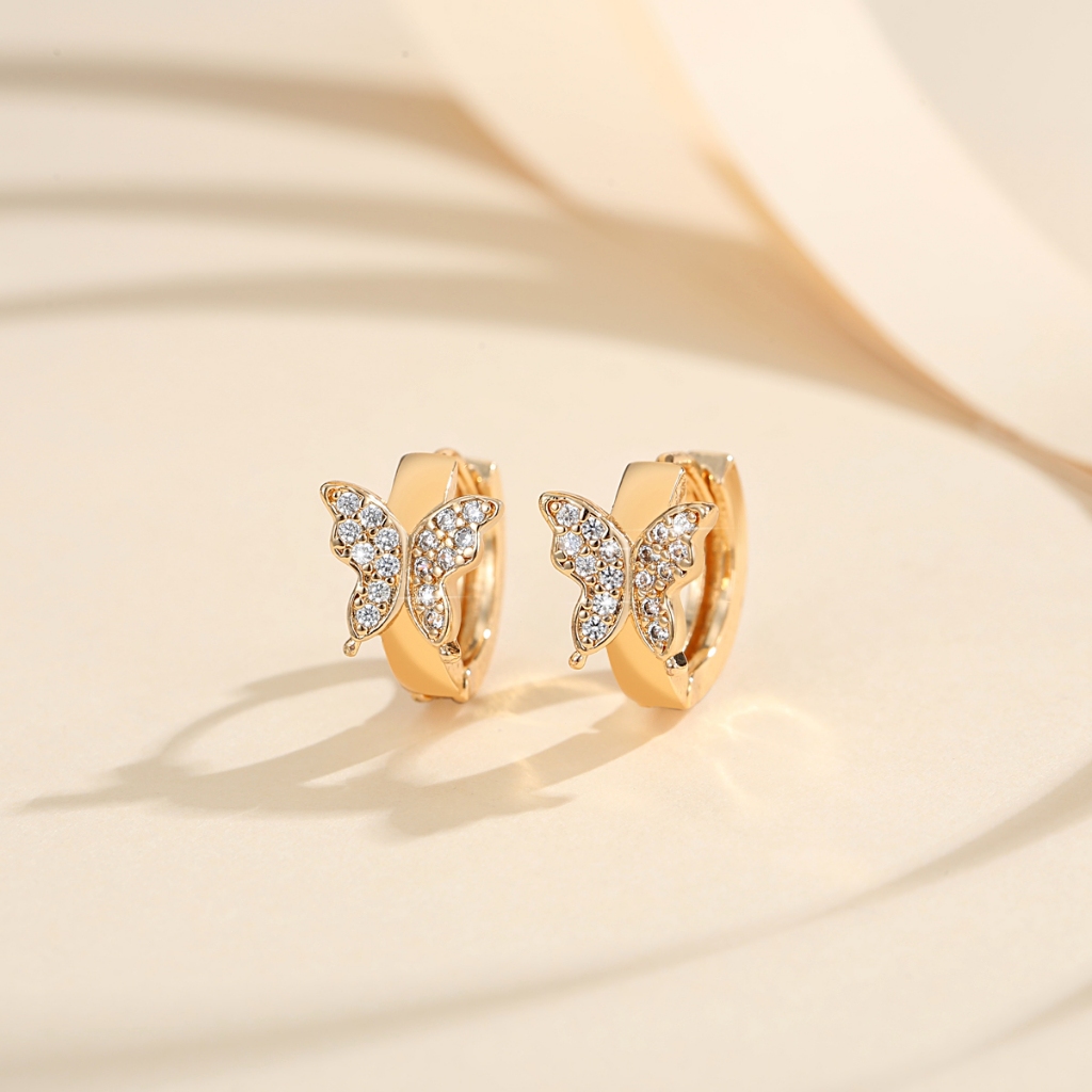 Lanmi Jewelry Anting Hoop Titanium Korea Panjang Anting Kupu Kupu Anti Karat Lapis Emas Anting Wanita Dewasa Korea Murah Y022