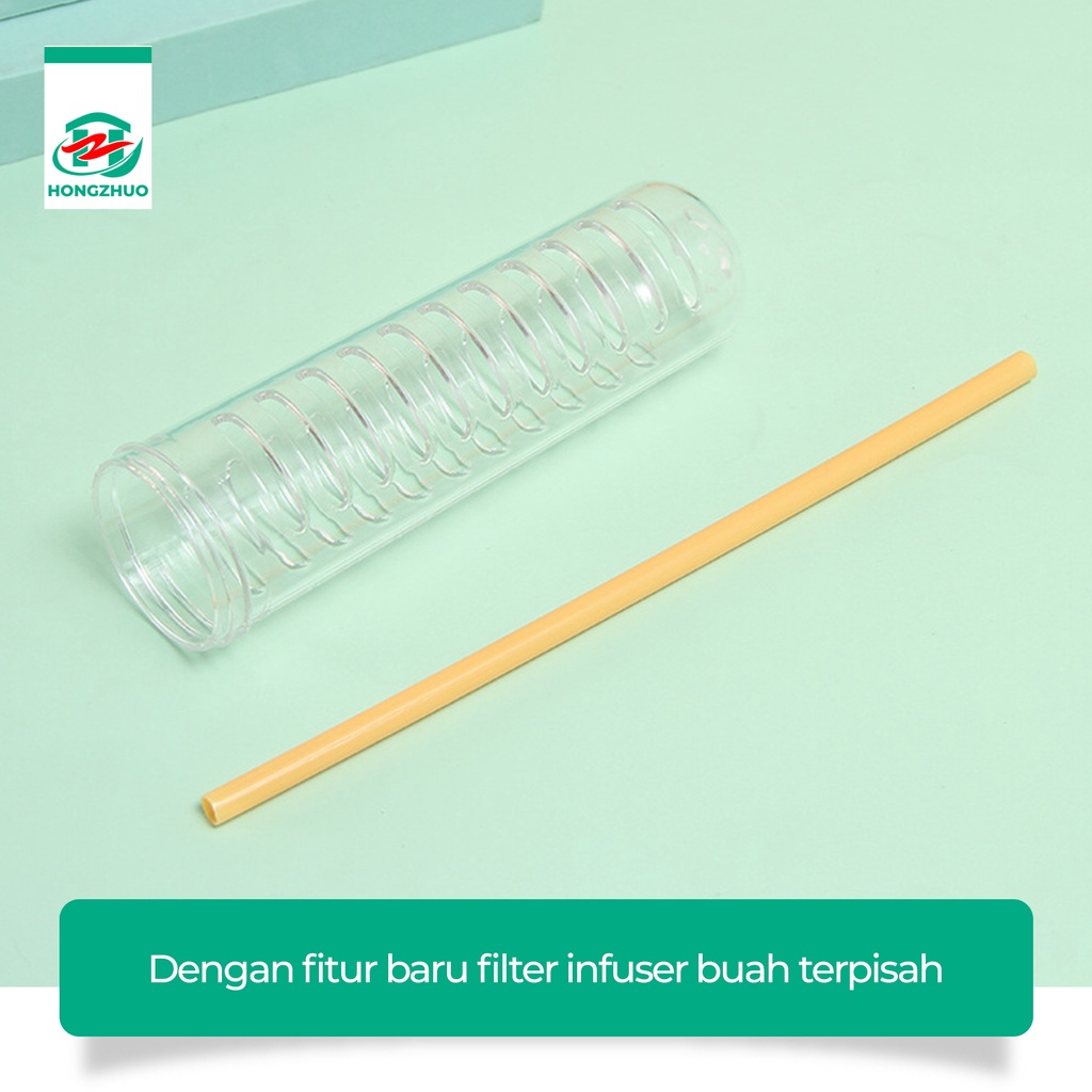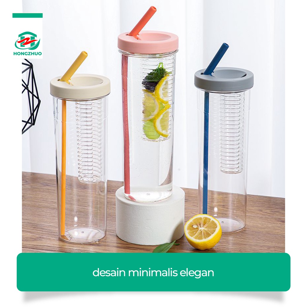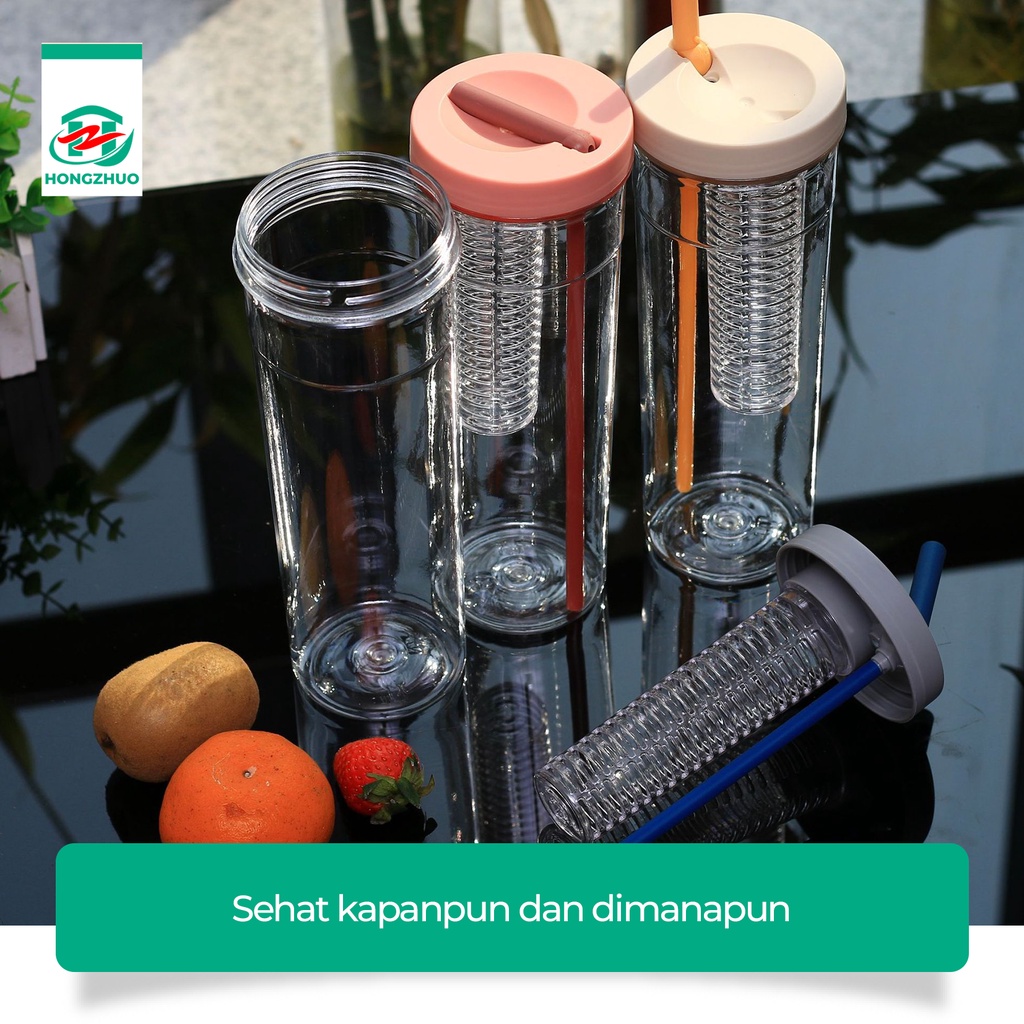 Hongzhuo Botol Minum Transparan Infused Water Botol Minum Sedotan Lipat Botol Minum Buah 1000ml