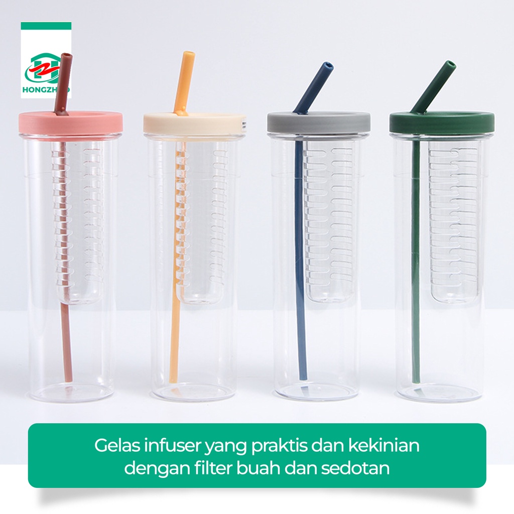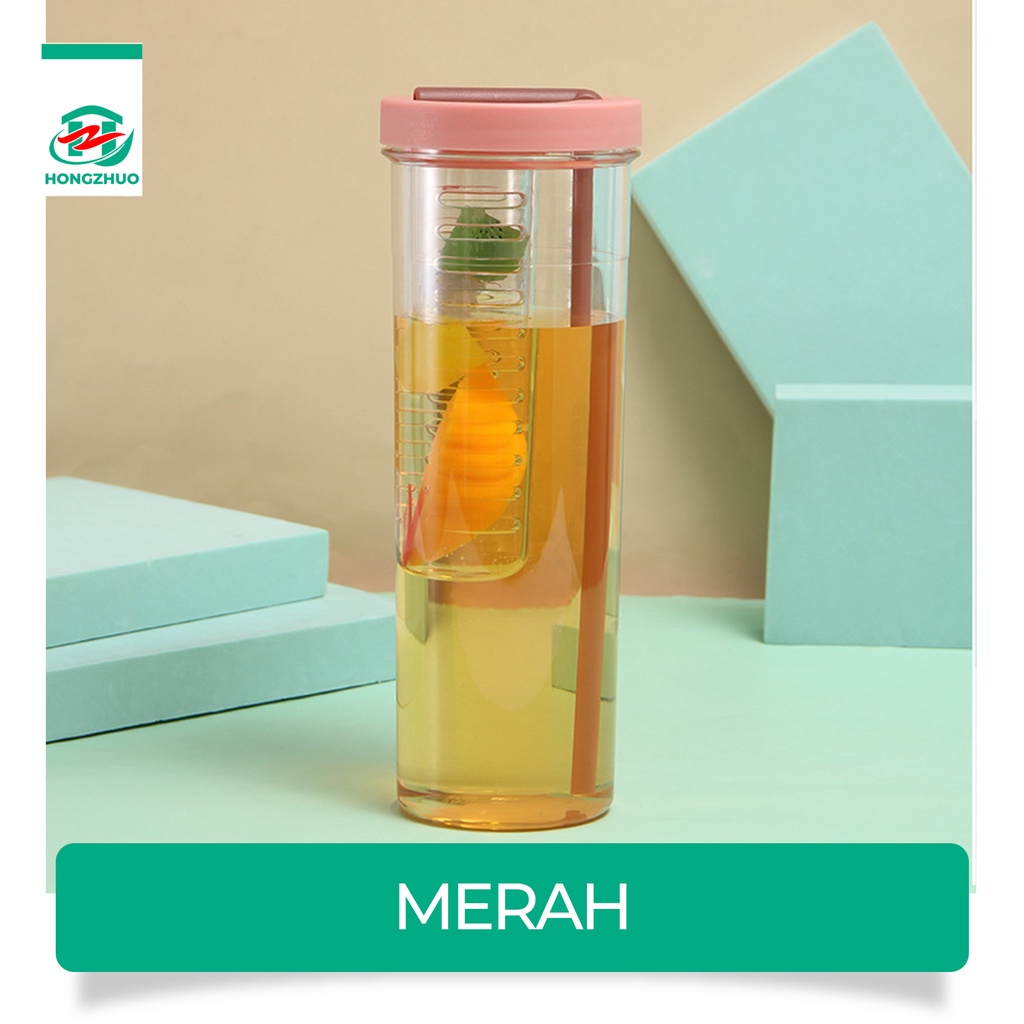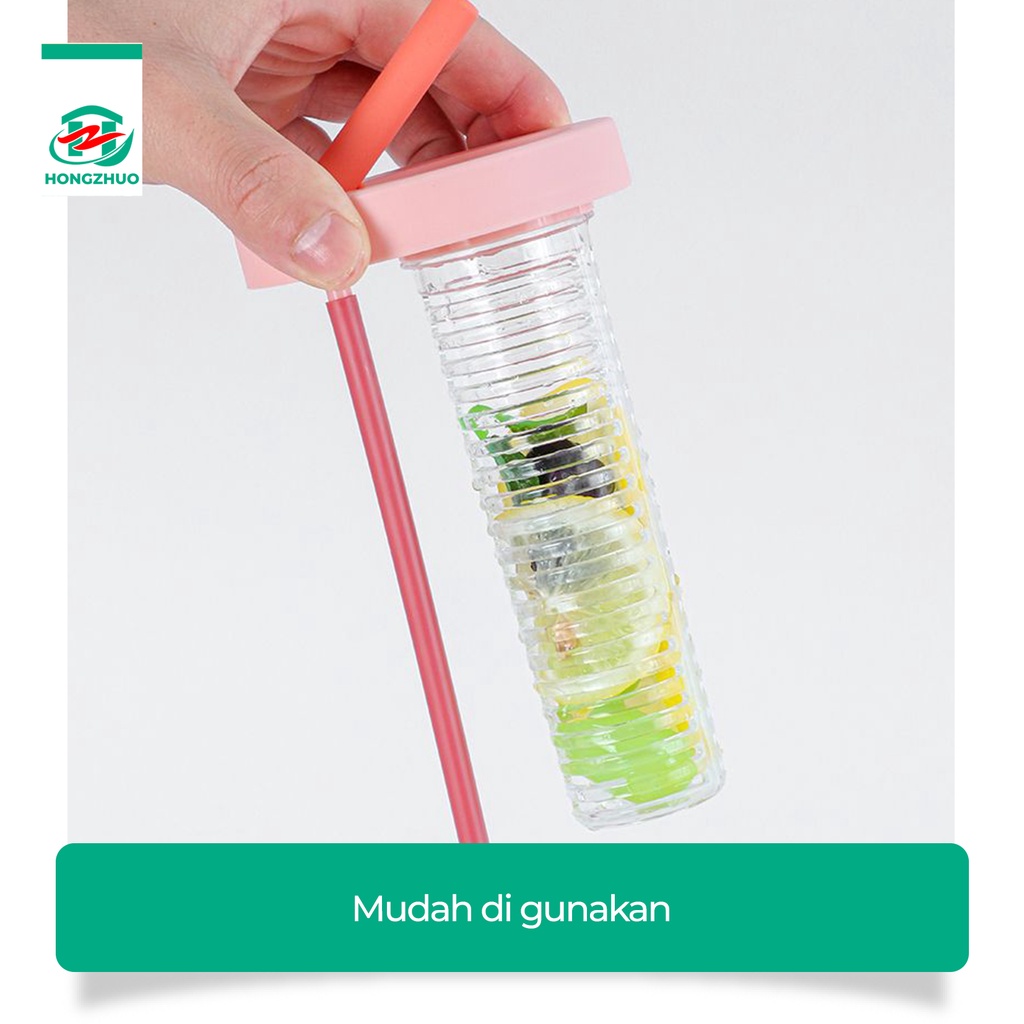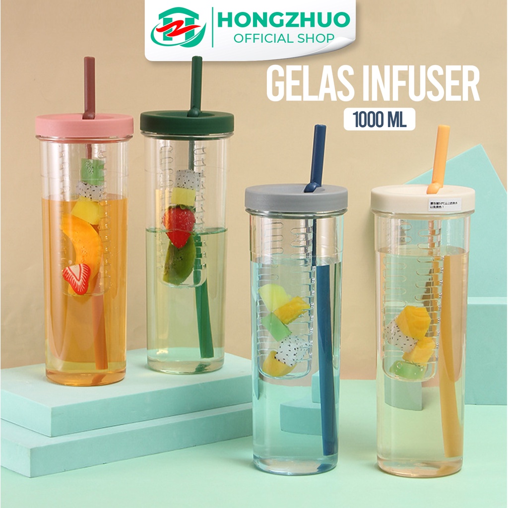 Hongzhuo Botol Minum Transparan Infused Water Botol Minum Sedotan Lipat Botol Minum Buah 1000ml