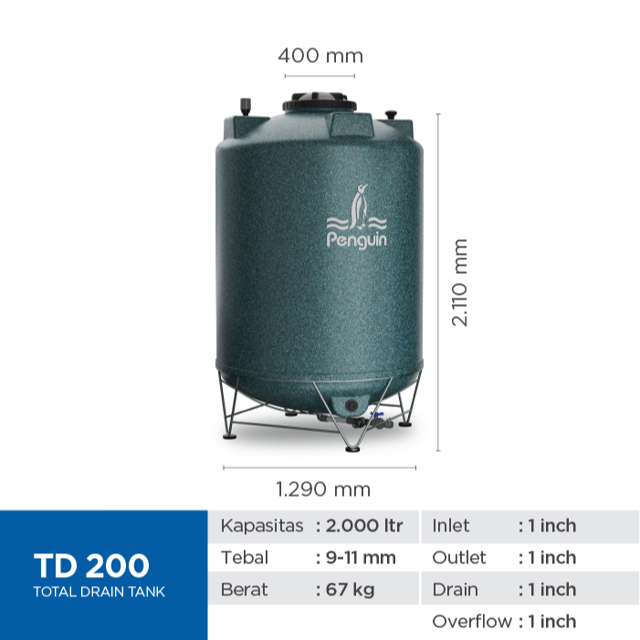 Penguin TD-200 2000 Liter Toren Tandon Tangki AIr Total Drain Tank