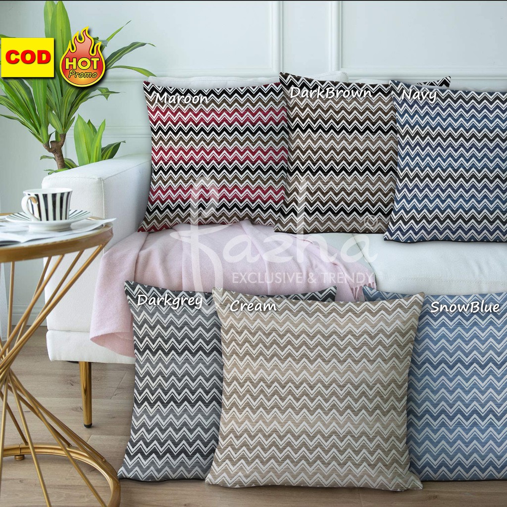 Sarung Bantal Sofa Kursi Tamu fazhaMewah Kekinian Minimalis Modern Premium Unik Murah Meriah Motif Geometris Geometrik Zigzag Zig Zag Cream Biru Merah Abu Hitam Navy Coklat Tua Ukuran 30x30 30x50 35x35 40x40 40x60 45x45 50x50 50x60 55x55 60x60 65x65 70x70