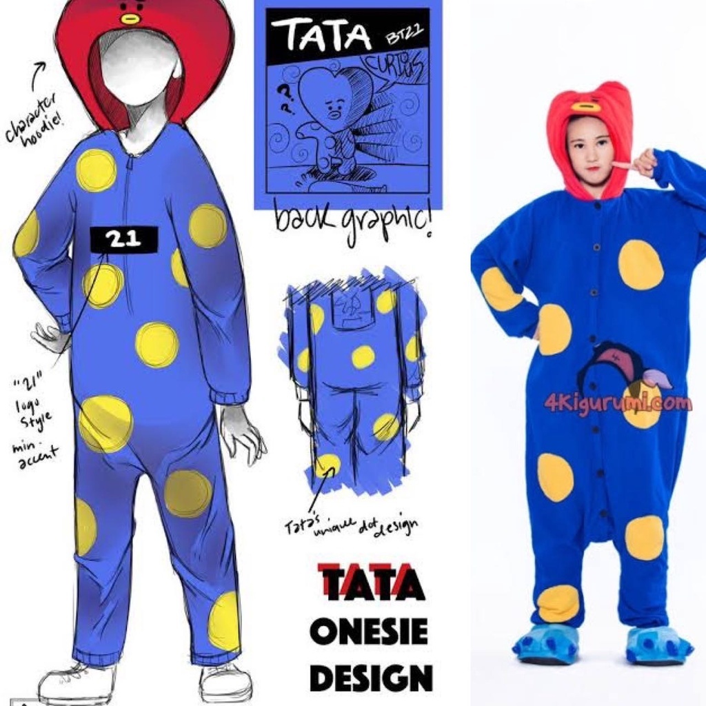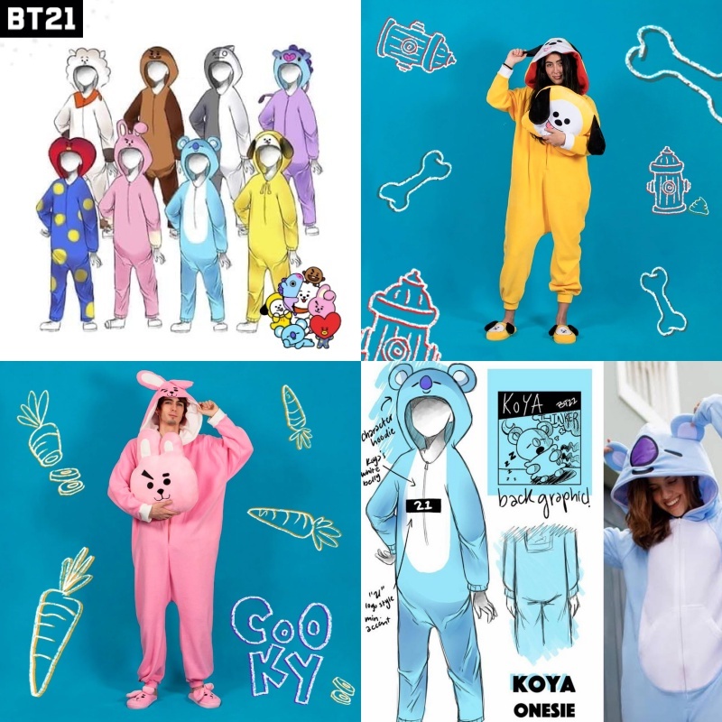 BT21 BTS Kostum Onesie Kigurumi Cosplay Chimmy Cooky Tata Mang Koya Piyama Dewasa