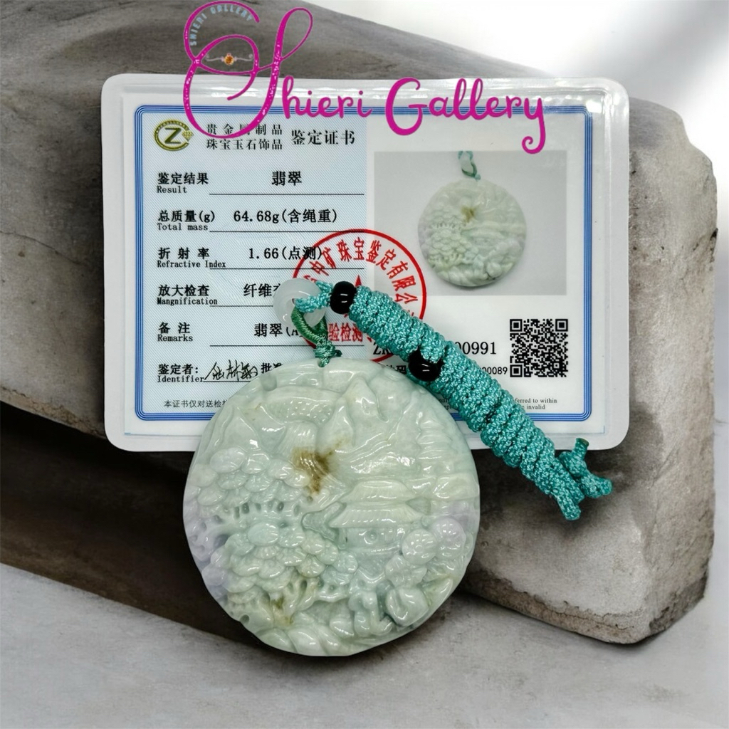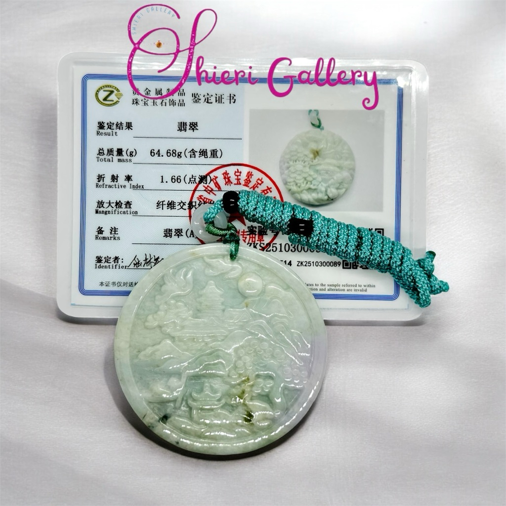 Giok / Giok Burma / Liontin Giok / Liontin Giok Ukir / Pemandangan / Kuda Putar / Kalung Giok / Burma Grade A / Jade Jadeite / Jade Pendant