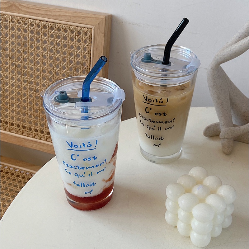 [JAFA] VOILA Gelas Transparan Teks Tulisan Aesthetic Korea Kaca Beling Milk Coffee Typography Text Transparent Tumbler Glass
