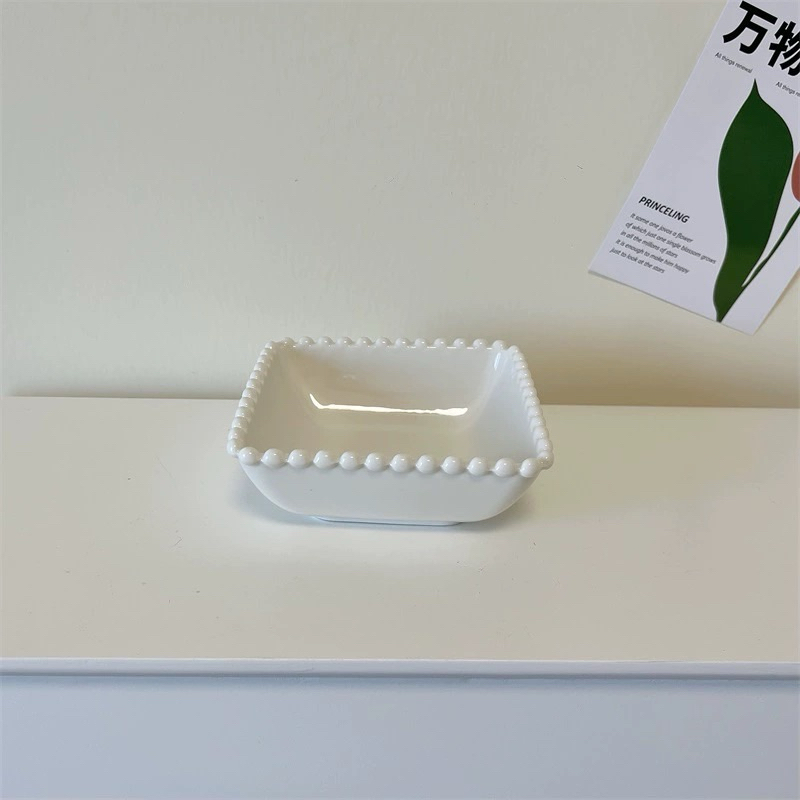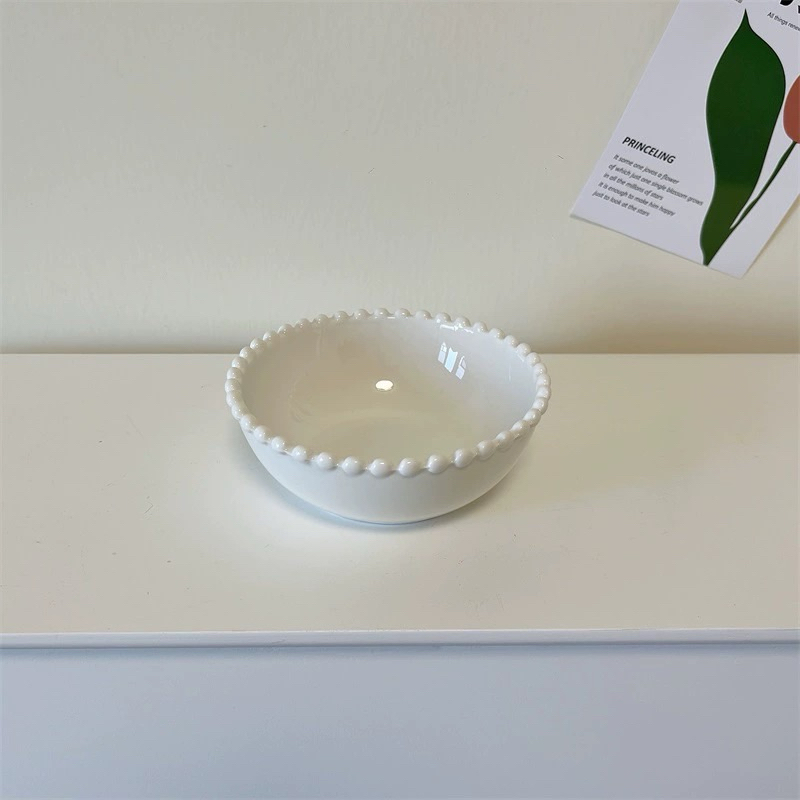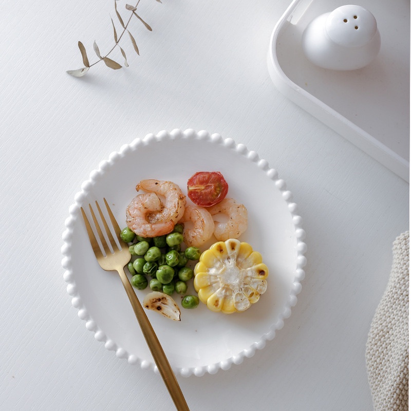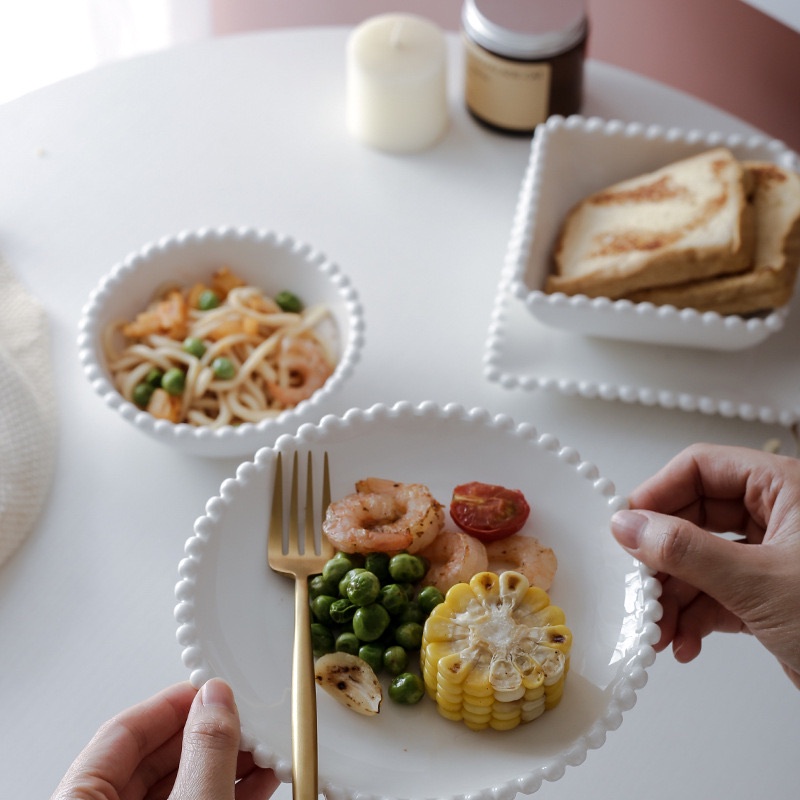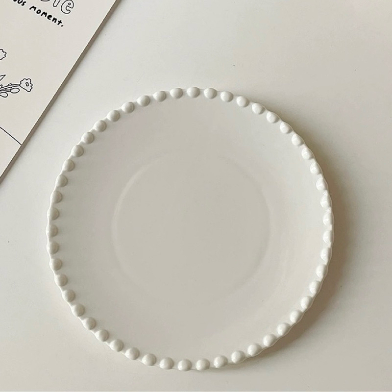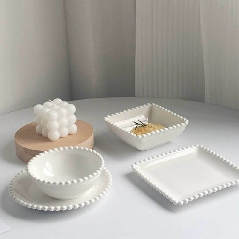 [JAFA] BISKY Piring Mangkok Keramik Putih Mutiara Bergelombang Premium Simple Elegant / Ceramic Pearl Lace White Plate Bowl