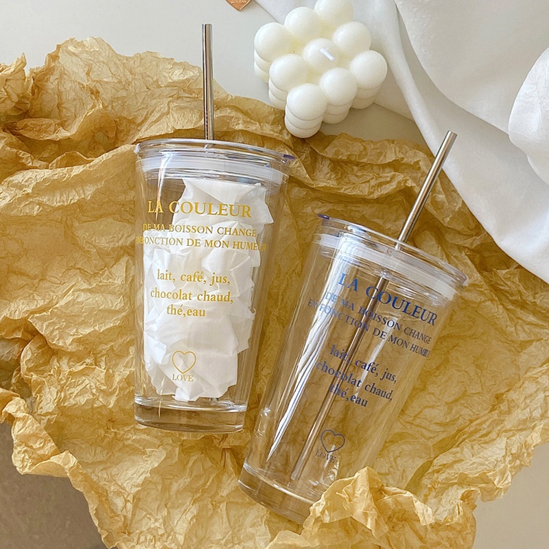 [JAFA] LA COULEUR Gelas Tumbler Kaca Tebal Korea dengan Tutup Sedotan Korea Glass Cup with Lid Transparent
