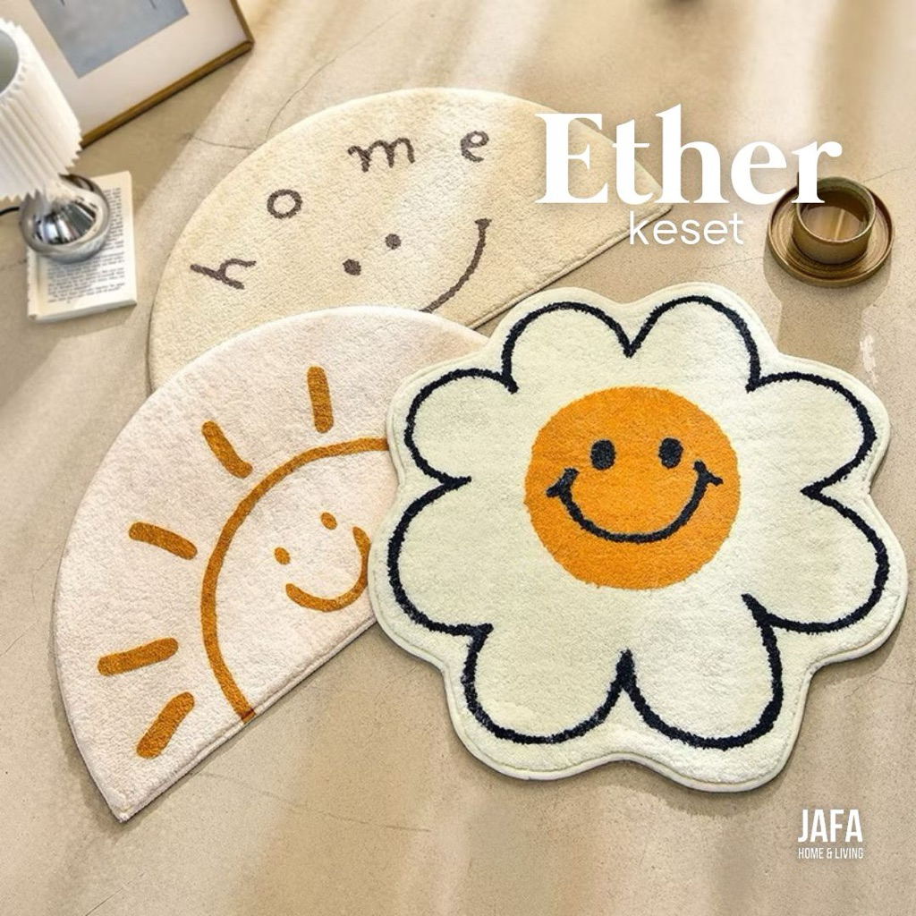 [JAFA] ETHER Keset Kamar Mandi Anti Slip Floor Mat Bathroom / Karpet Kaki Kamar Mandi Nyerap Air 60x40cm Rumah Non Slip Kamar Mandi Japanese Jepang Korea Sun Smile Cartoon