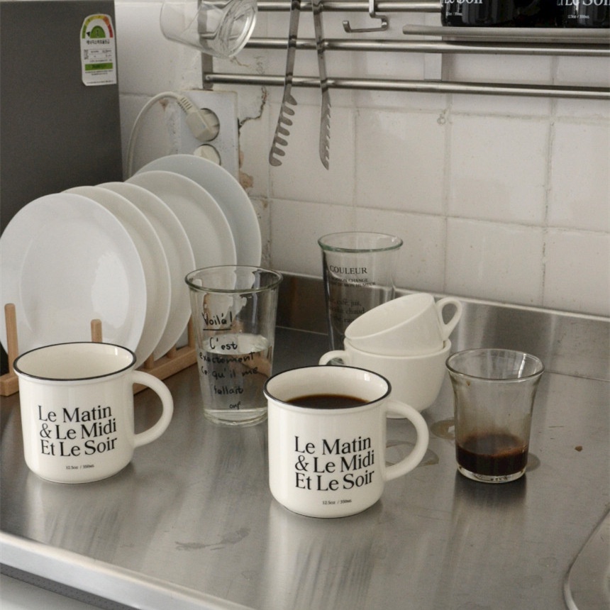 [JAFA] LE MATIN SOIR Gelas Mug Tulisan Aesthetic French Bahasa Perancis Korea Korean Jepang Japanese Style Bold Text Letter Typography Ceramic Coffee Mug