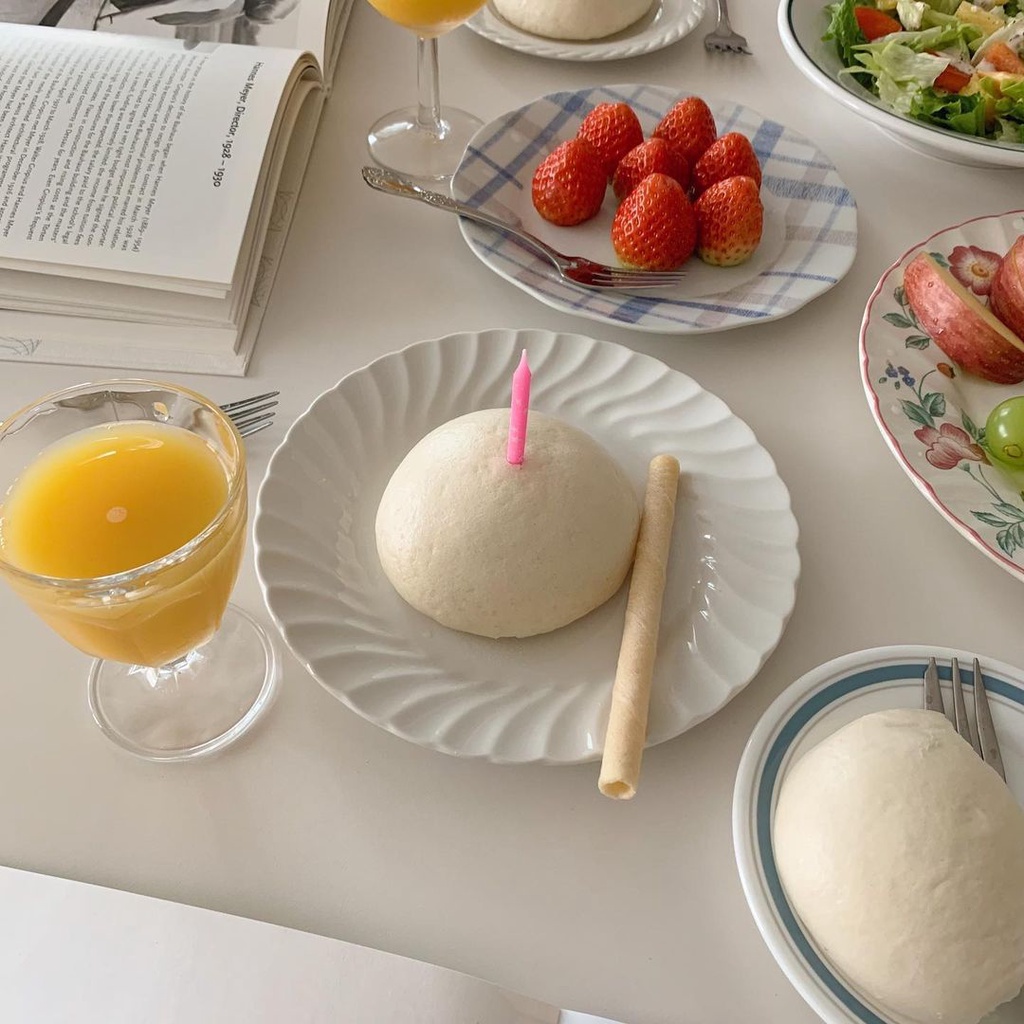 [JAFA] MINJI White Textured Pleated Ceramic Plate / Piring Keramik Putih Bertekstur Aestetik Gyoza Lucu Korea