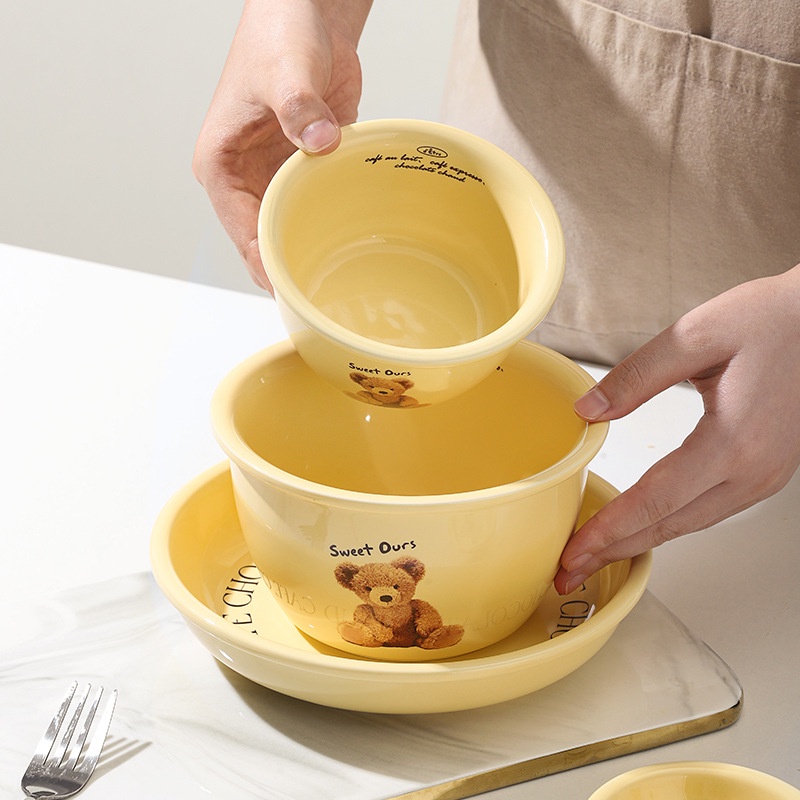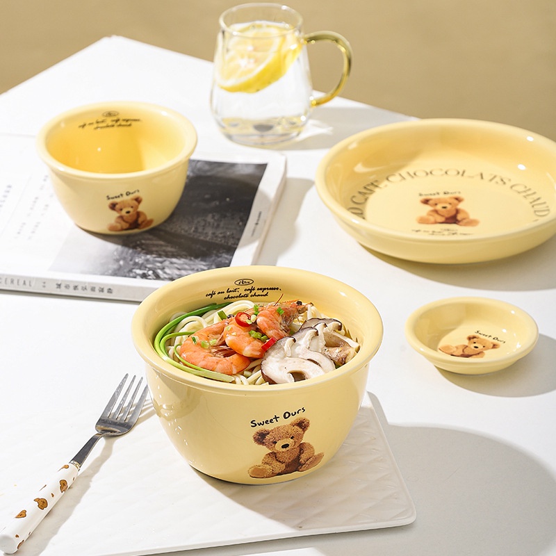 [JAFA] GOM Peralatan Makan Motif Beruang Piring & Mangkok Keramik Lucu Cute Korea Jepang Elegant Ceramic Bear Tableware